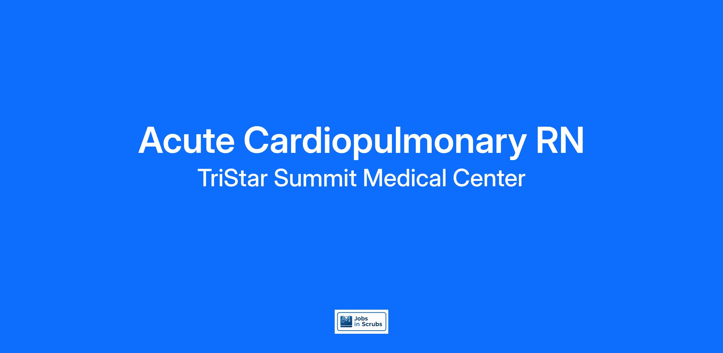Are you looking for a place to deliver excellent care patients deserve? At TriStar Summit Medical Center we support our colleagues in their positions. Join our Team as a(an) RN on the Acute Cardiopulmonary Unit and access programs to assist with every stage of your career.