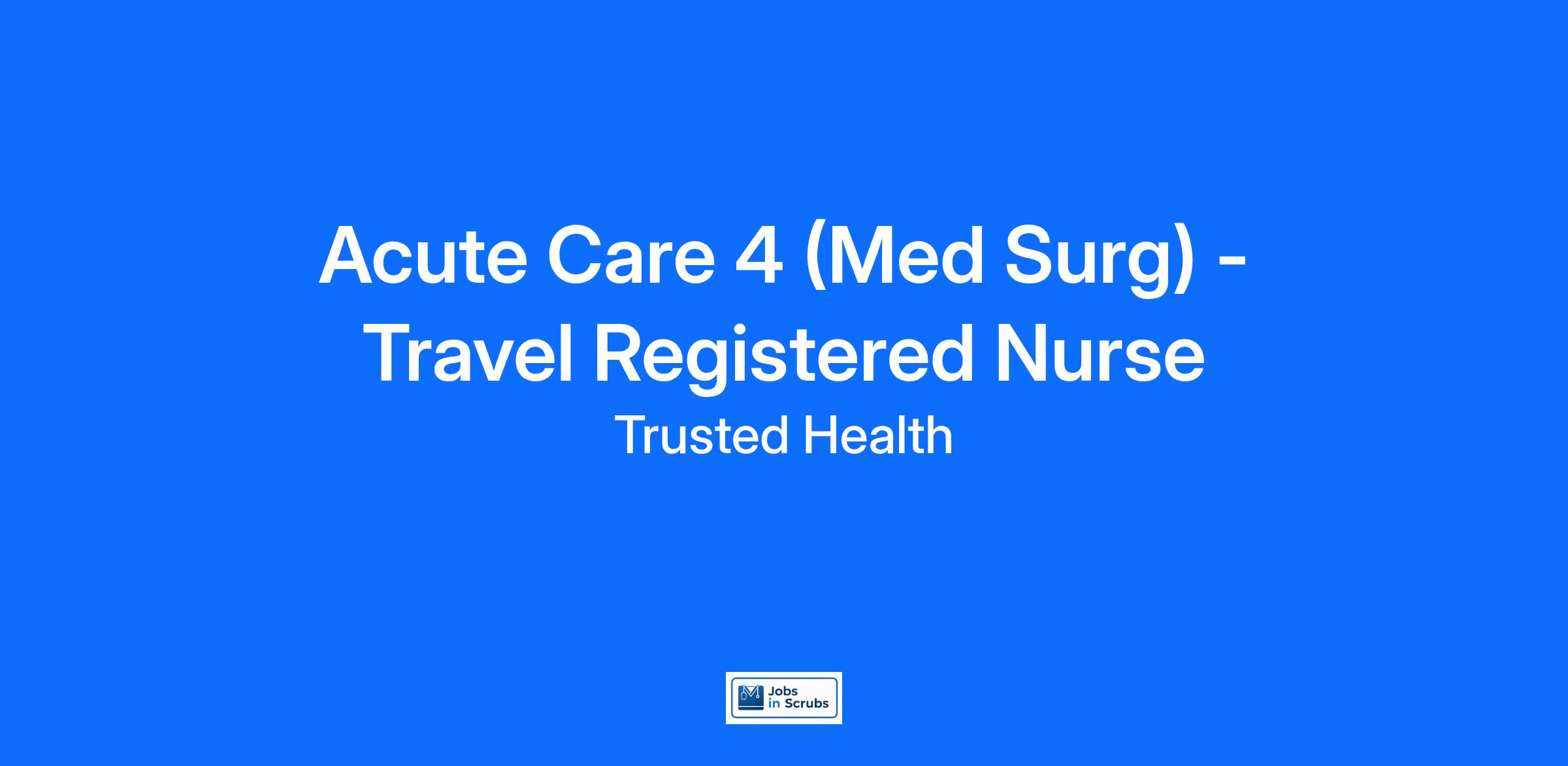 Trusted is seeking an experienced nurse for this exciting travel nursing assignment. Trusted has streamlined the travel nursing experience by enabling nurses to apply directly to jobs without the need for recruiters. This unique approach provides more transparency, eliminates pesky calls from recruiters, and puts more money in your pocket. Join the thousands of nurses across the country who have already made the switch to a more modern way to work.