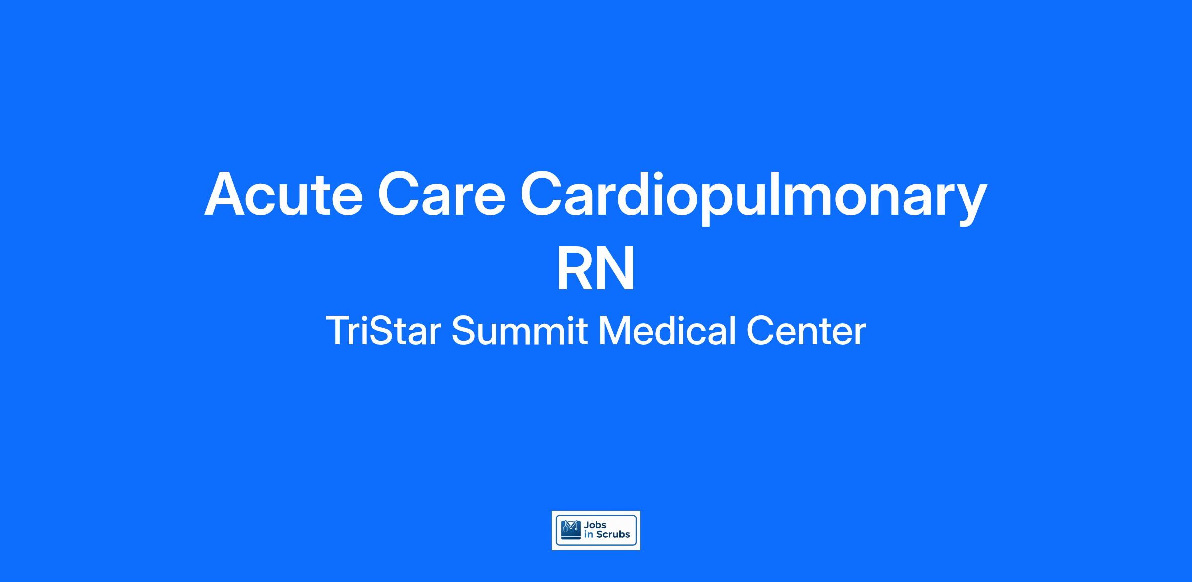 Do you have the career opportunities as a Acute Care Cardiopulmonary RN you want in your current role? We invest in what matters most to nurses like you – at home, at work, and at every stage in your career. We have an exciting opportunity for you to join TriStar Summit Medical Center which is a part of the nation’s leading provider of healthcare services, HCA Healthcare.