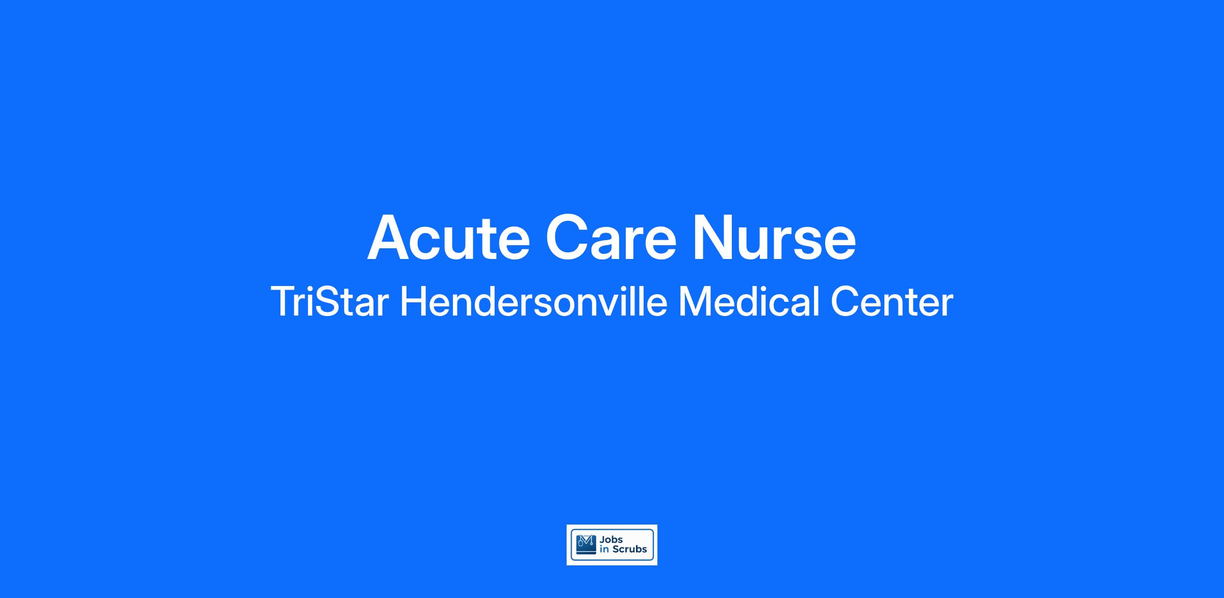 Experience the HCA Healthcare difference where colleagues are trusted, valued members of our healthcare team. Grow your career with an organization committed to delivering respectful, compassionate care, and where the unique and intrinsic worth of each individual is recognized. Submit your application for the opportunity below:Acute Care NurseTriStar Hendersonville Medical Center