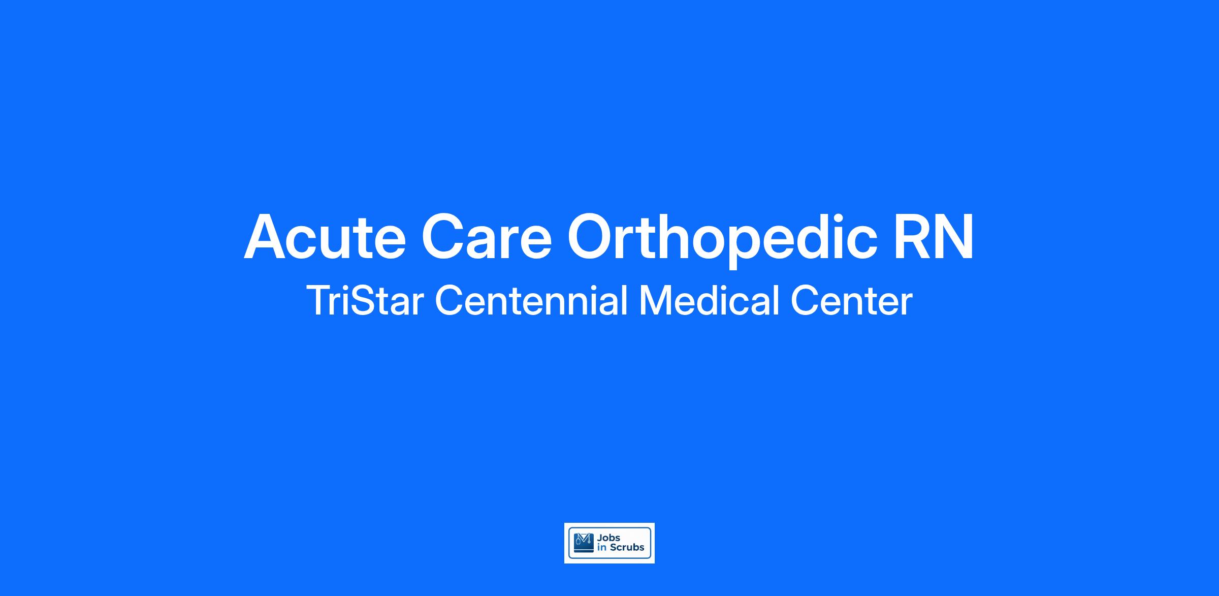 Do you have the career opportunities as a Acute Care Nurse you want with your current employer? We have an exciting opportunity for you to join TriStar Centennial Medical Center which is part of the nation's leading provider of healthcare services, HCA Healthcare.
