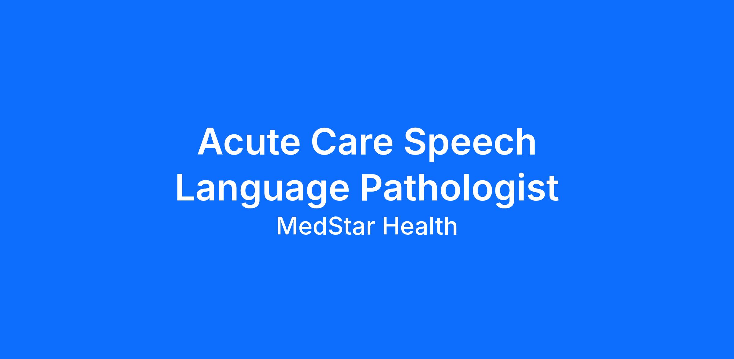 Acute Care Speech Language Pathologist