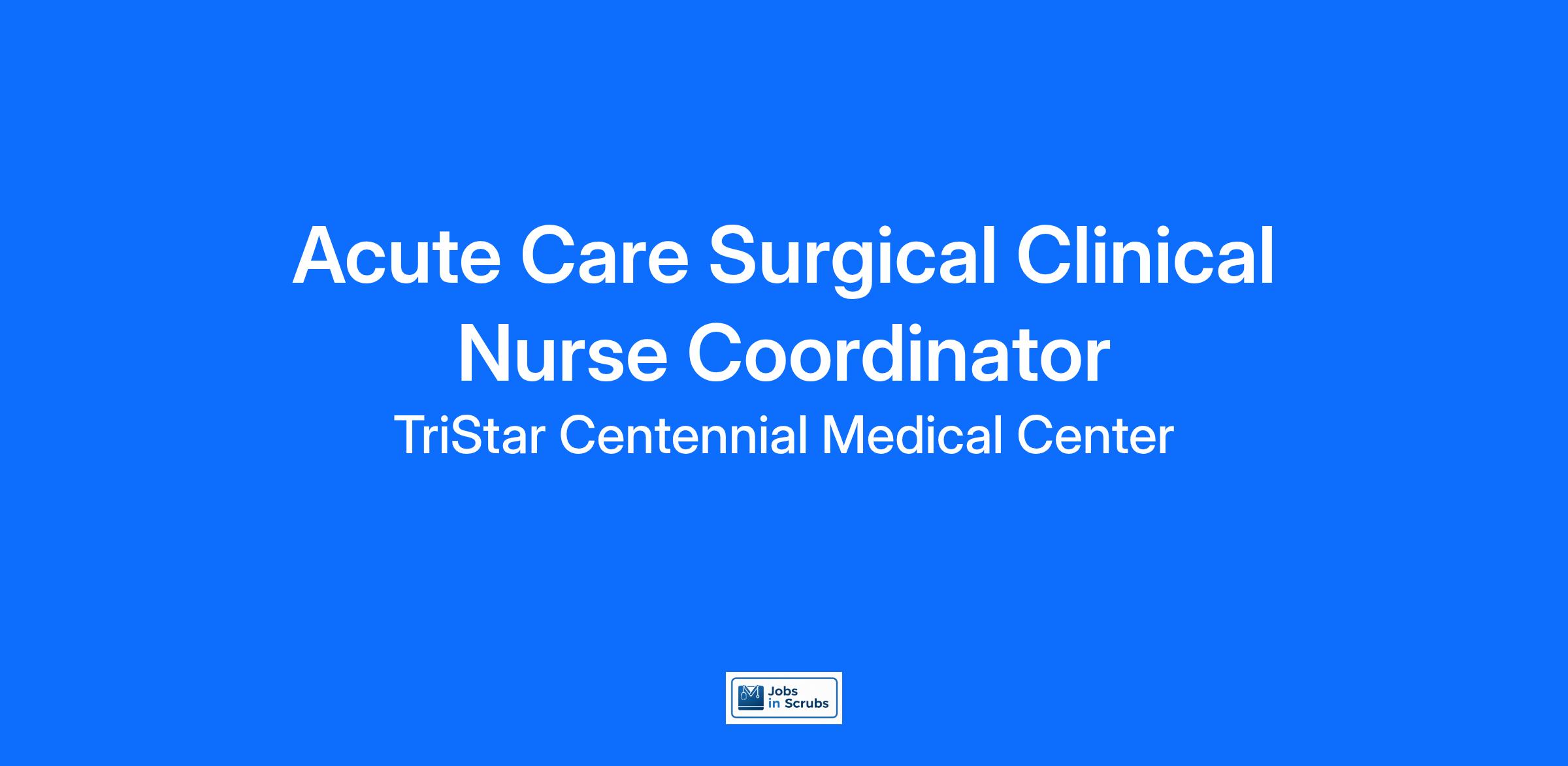 Are you looking for a place to deliver excellent care patients deserve? At TriStar Centennial Medical Center we support our colleagues in their positions. Join our Team as a(an) Acute Care Surgical Clinical Nurse Coordinator and access programs to assist with every stage of your career.