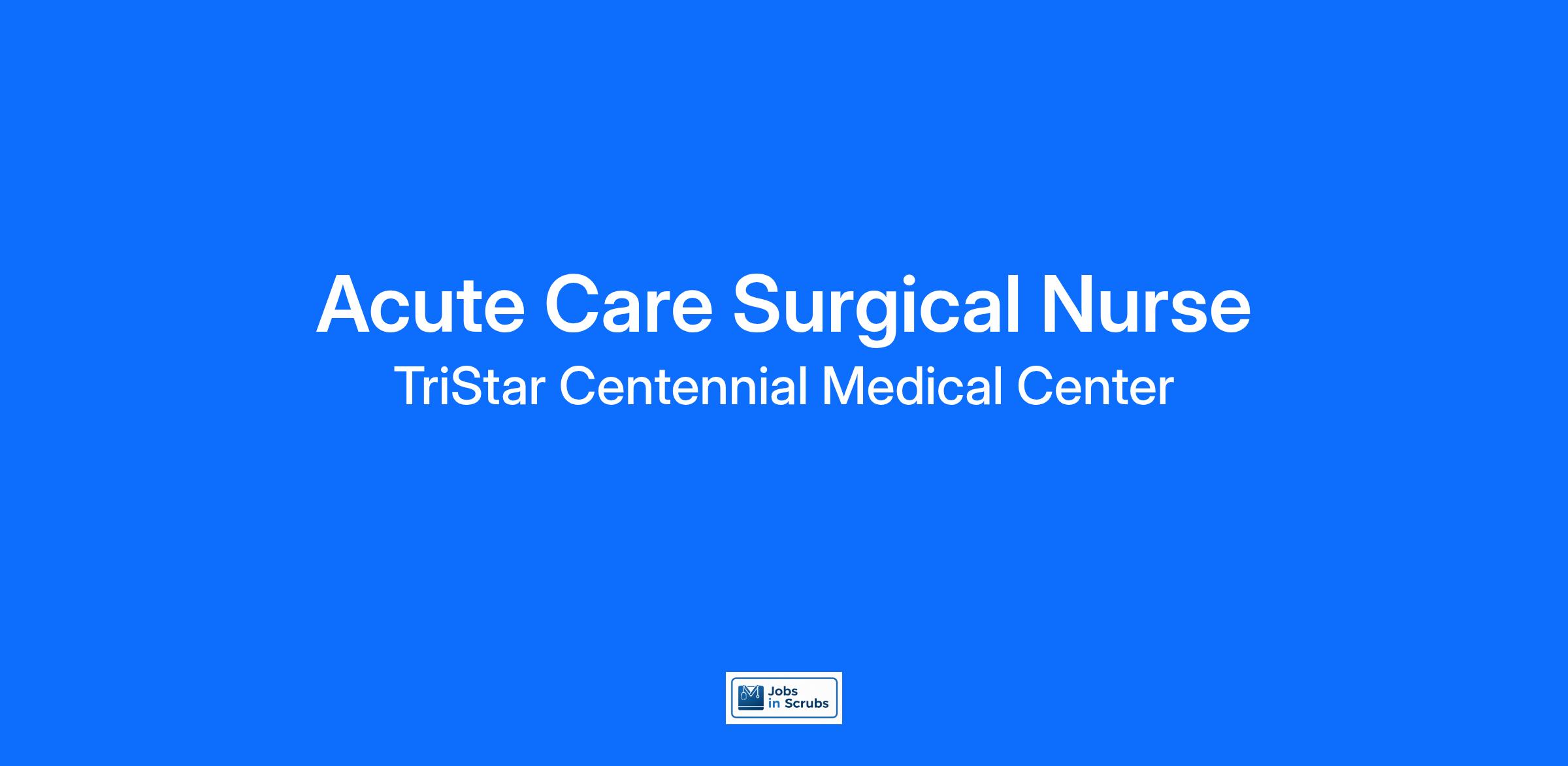 Do you have the career opportunities as a Acute Care Surgical Nurse you want in your current role? We invest in what matters most to nurses like you – at home, at work, and at every stage in your career. We have an exciting opportunity for you to join TriStar Centennial Medical Center which is a part of the nation’s leading provider of healthcare services, HCA Healthcare.