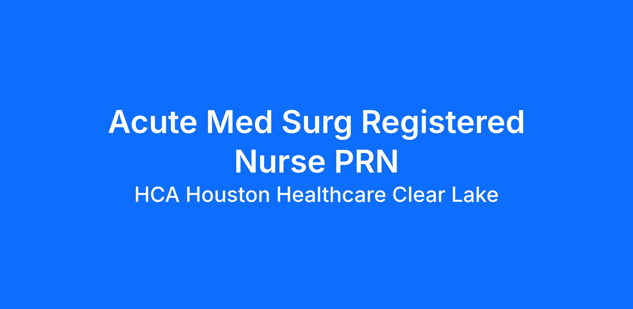 Do you have the PRN career opportunities as a Registered Nurse Med Surg you want with your current employer? We have an exciting opportunity for you to join HCA Houston Healthcare Clear Lake which is part of the nation's leading provider of healthcare services, HCA Healthcare.