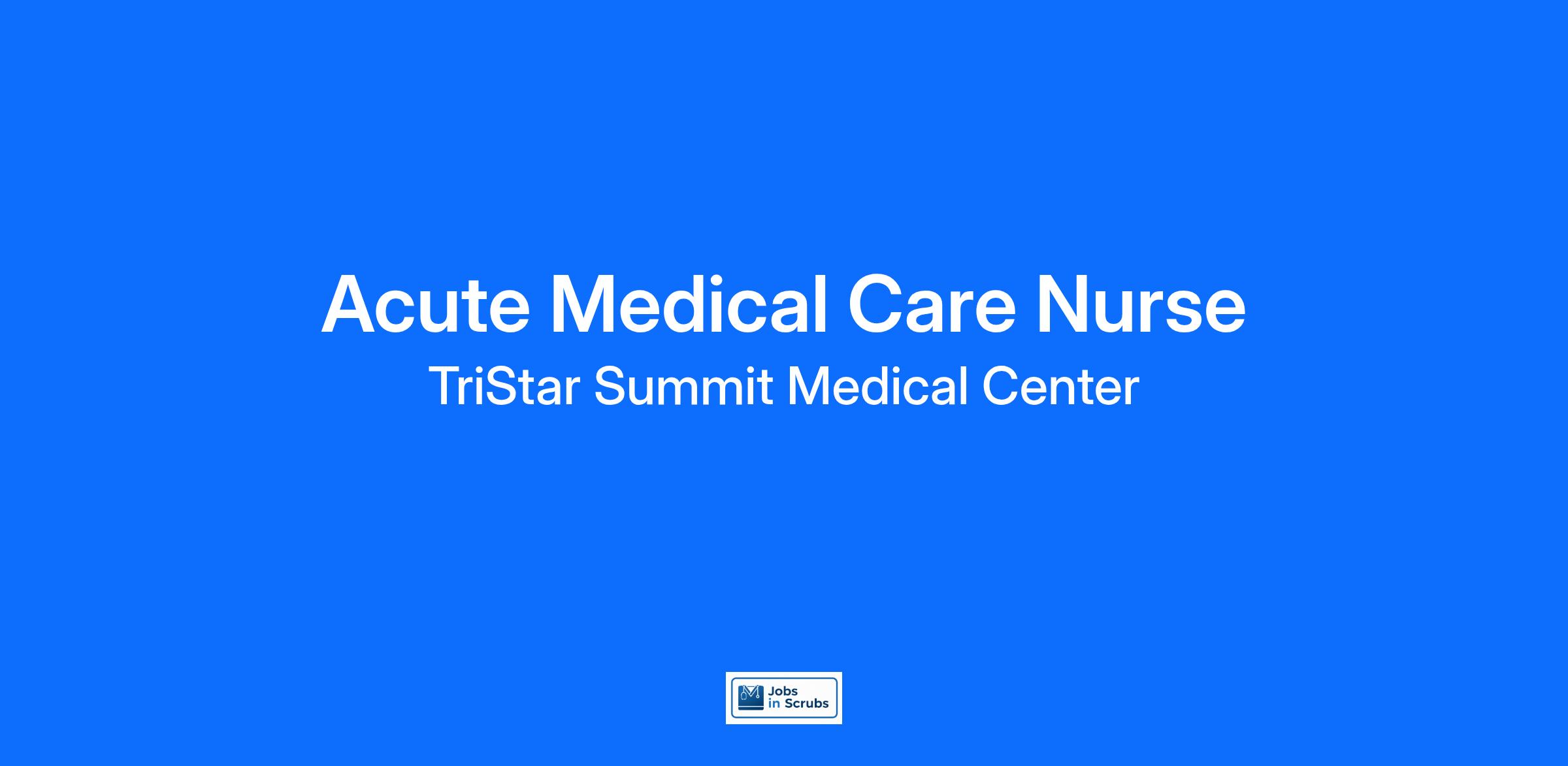 Are you looking for a place to deliver excellent care patients deserve? At TriStar Summit Medical Center we support our colleagues in their positions. Join our Team as a(an) Acute Medical Care Nurse and access programs to assist with every stage of your career.
