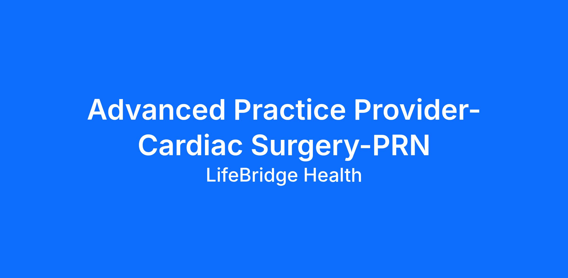 Sinai Hospital is seeking an experienced Advanced Practice Provider (APP) – Physician Assistant (PA) or Nurse Practitioner (NP) – to join our Cardiac Surgery team on a PRN basis. This position requires prior experience in cardiac surgery, including proficiency in endoscopic and open saphenous vein harvesting, first-assisting in cardiac surgical procedures, and comprehensive perioperative patient care. The APP will work in a dynamic, high-acuity environment providing care across the Operating Room, Inpatient Units, and Outpatient Clinic, with scheduled on-call responsibilities.
