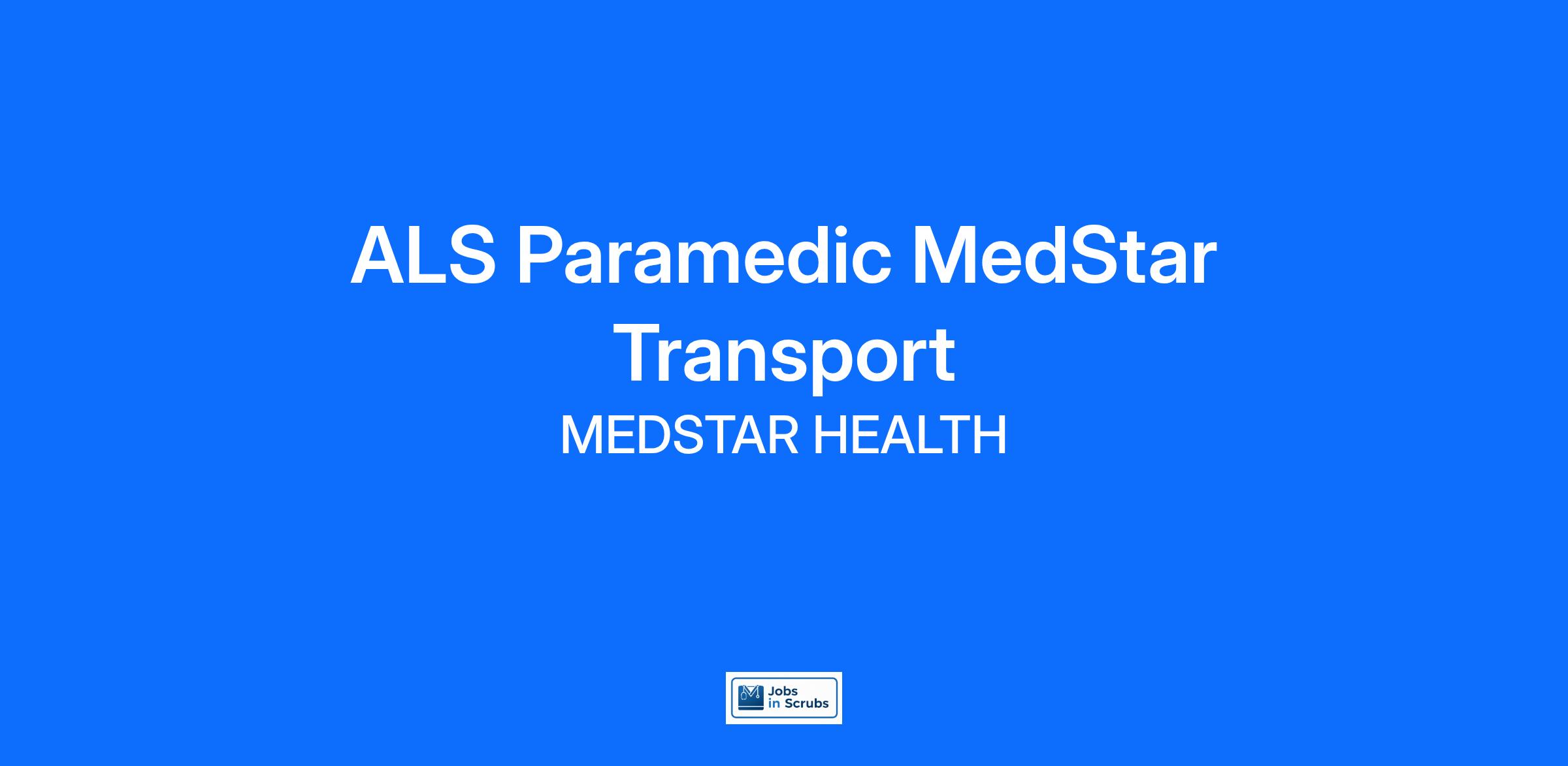 Join our ground transport team in Clinton or Baltimore, Maryland as an ALS Paramedic where you’ll medically support and care for transport patients to other medical/hospital facilities working closely with EMT's and Critical Care nurses.