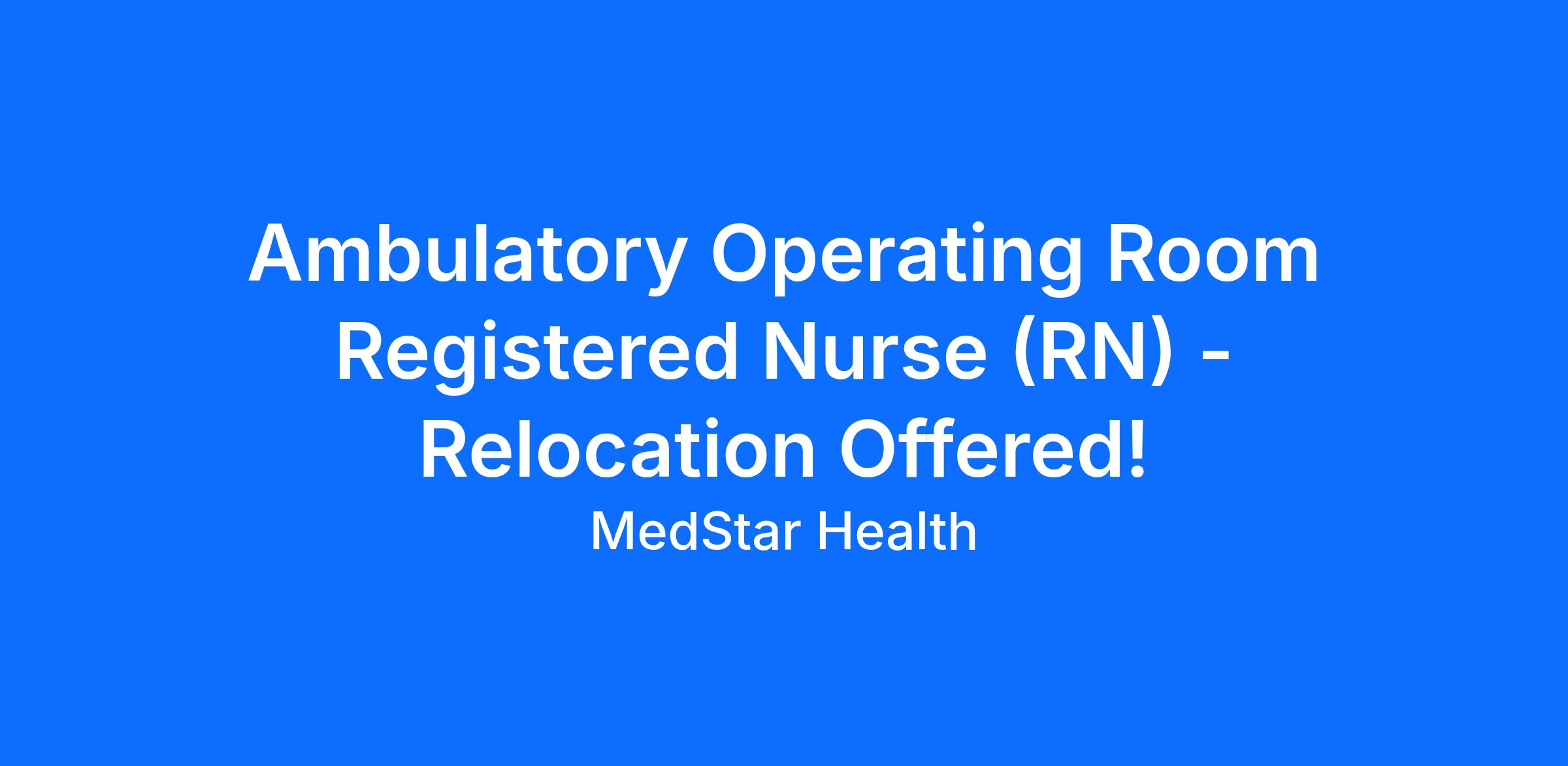 Adheres to surgical schedule and case turnover consistent with standards. Is ready for first case of the day consistent with OR scheduling policies. Maintains communication with control desk anticipating delays or completion of case.Anticipates needs of surgical team by correctly assembling needed supplies for each procedure according to physician preference card. Verifies that all equipment is functioning at the beginning of and during the case recognizing own problem-solving limitations and seeks assistance as needed. Maintains a sterile field throughout the case by practicing aseptic techniques in accordance with standards of care and infection control guidelines; or anticipates needs of the perioperative patient in the PACU setting.Communicates patient's clinical information clearly and accurately in verbal and written format. Clearly and accurately documents pertinent information in the patient's medical record. Consistently demonstrates effective documentation practices and develops strategies to ensure complete documentation of patient care.Completes timely initial and ongoing patient assessments considering the physiological psychosocial spiritual cultural and developmental needs of patients and families. Serves as a resource in planning care for complex patients.Contributes to the achievement of established department goals and objectives and adheres to department policies procedures quality standards and safety standards. Complies with governmental and accreditation regulations. Seeks opportunities to participate in developing revising standards of practice to meet changing patient population requirements.Coordinates care of assigned patient(s) preoperatively intraoperatively and/or postoperatively. Consistently demonstrates effective leadership behavior. Maintains patient privacy and confidentiality. Facilitates collaboration among other health team members fostering effective communication with other disciplines.Delivers nursing care to patients considering the current status of the patient and the plan of care and incorporating the principles of patient centered care.Evaluates the patient's response to treatment and progress toward identified goals and revises plan of care as appropriate.In collaboration with the patient family and other members of the health care team systematically develops revises and coordinates the patient's plan of care. Formulates nursing diagnosis as necessary. Assists others in developing revising and coordinating patient's plan of care.In coordinating the delivery of patient care delegates activities to unlicensed staff in accordance with MedStar/facility policies principles of Patient-Centered Care and the Maryland Nurse Practice Act. Supervises the performance of the delegated nursing task by the unlicensed staff. Assists staff in delegation/time management skills. Identifies ways to facilitate working relationships among all levels of staff.Initiates and monitors discharge planning activities in collaboration with other members of the health care team. Takes the lead in facilitating timely discharge.Maintains a safe and therapeutic environment of caring for patients and families. Provides basic patient comfort measures. When necessary provides environmental support to expedite timely patient admission or transfer. Ensures a safe supportive environment for staff and medical staff. Identifies and acts upon opportunities to improve the environment of care.Participates in multidisciplinary quality and service improvement teams.Performs other duties as assigned. Minimal QualificationsEducation- Bachelor's degree an accredited School of Nursing. required