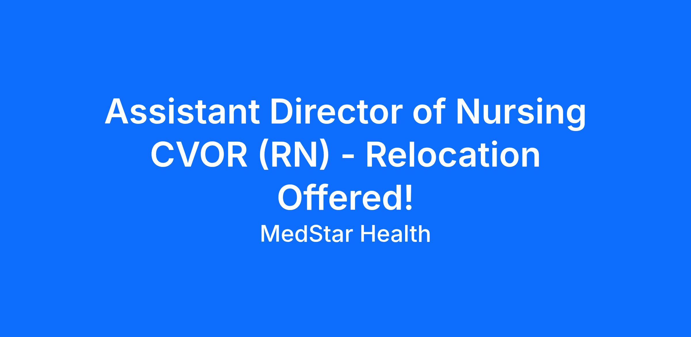 - The Assistant Director of Nursing – CVOR is a key member of the nursing leadership team responsible for operational oversight of the Cardiovascular Operating Room. This leader collaborates with the Director of Nursing to manage clinical operations, support nursing practice, and ensure exceptional patient outcomes.