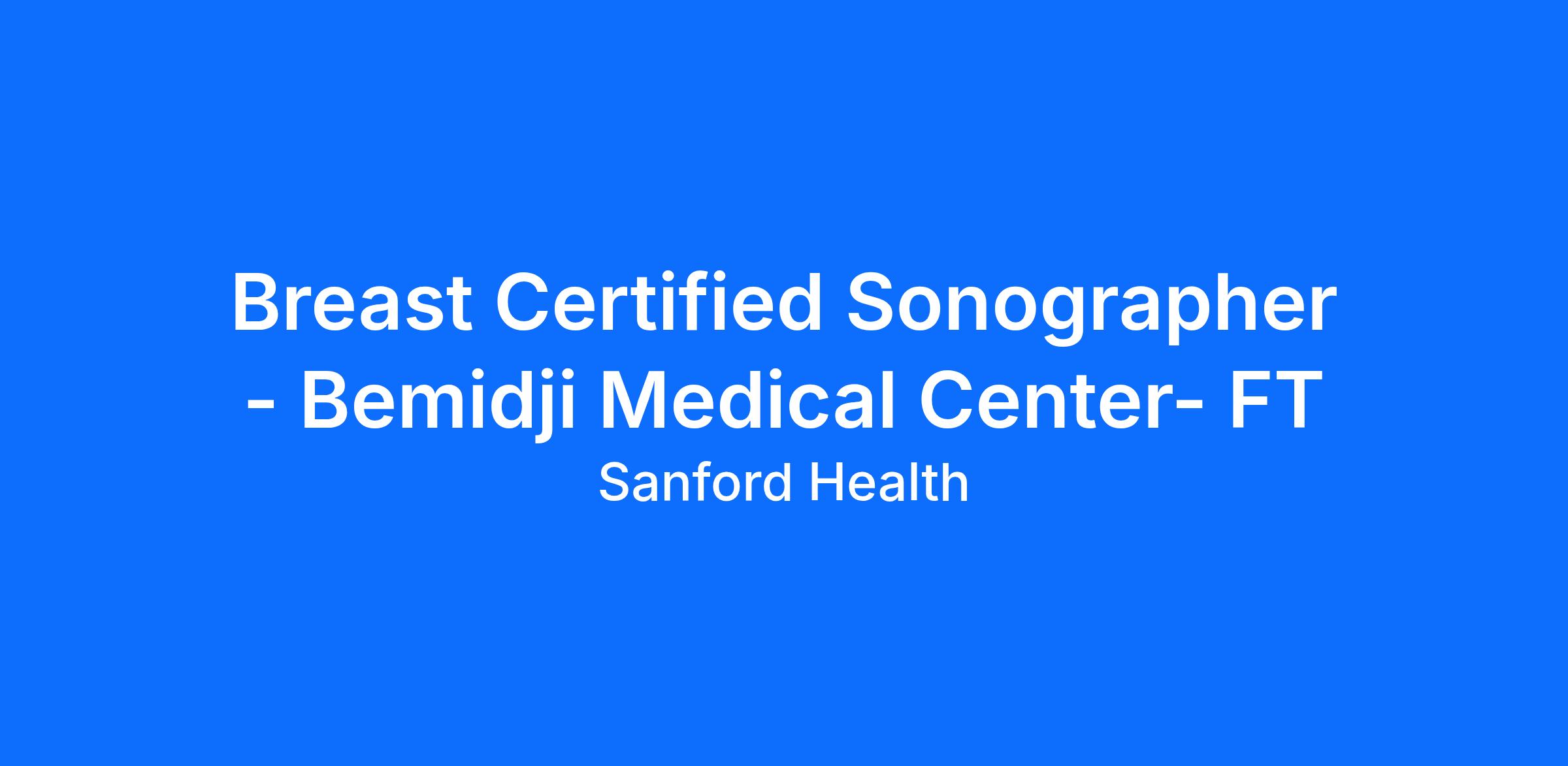 Breast Certified Sonographer - Bemidji Medical Center- FT