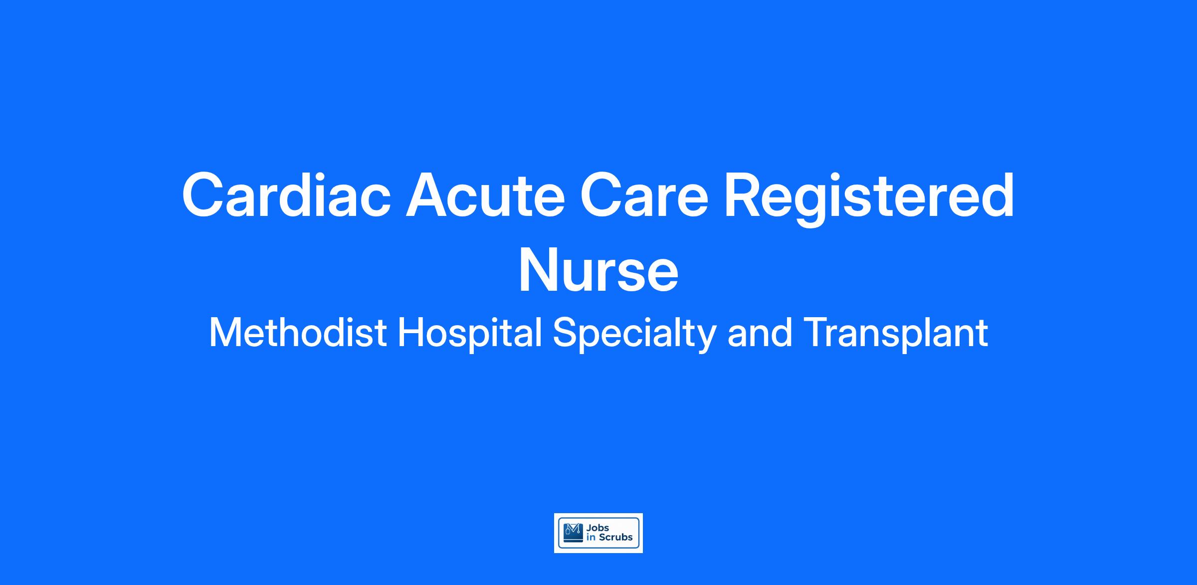 Are you looking for a place to deliver excellent care patients deserve? At Methodist Hospital Specialty and Transplant we support our colleagues in their positions. Join our Team as a Cardiac Acute Care Registered Nurse and access programs to assist with every stage of your career.
