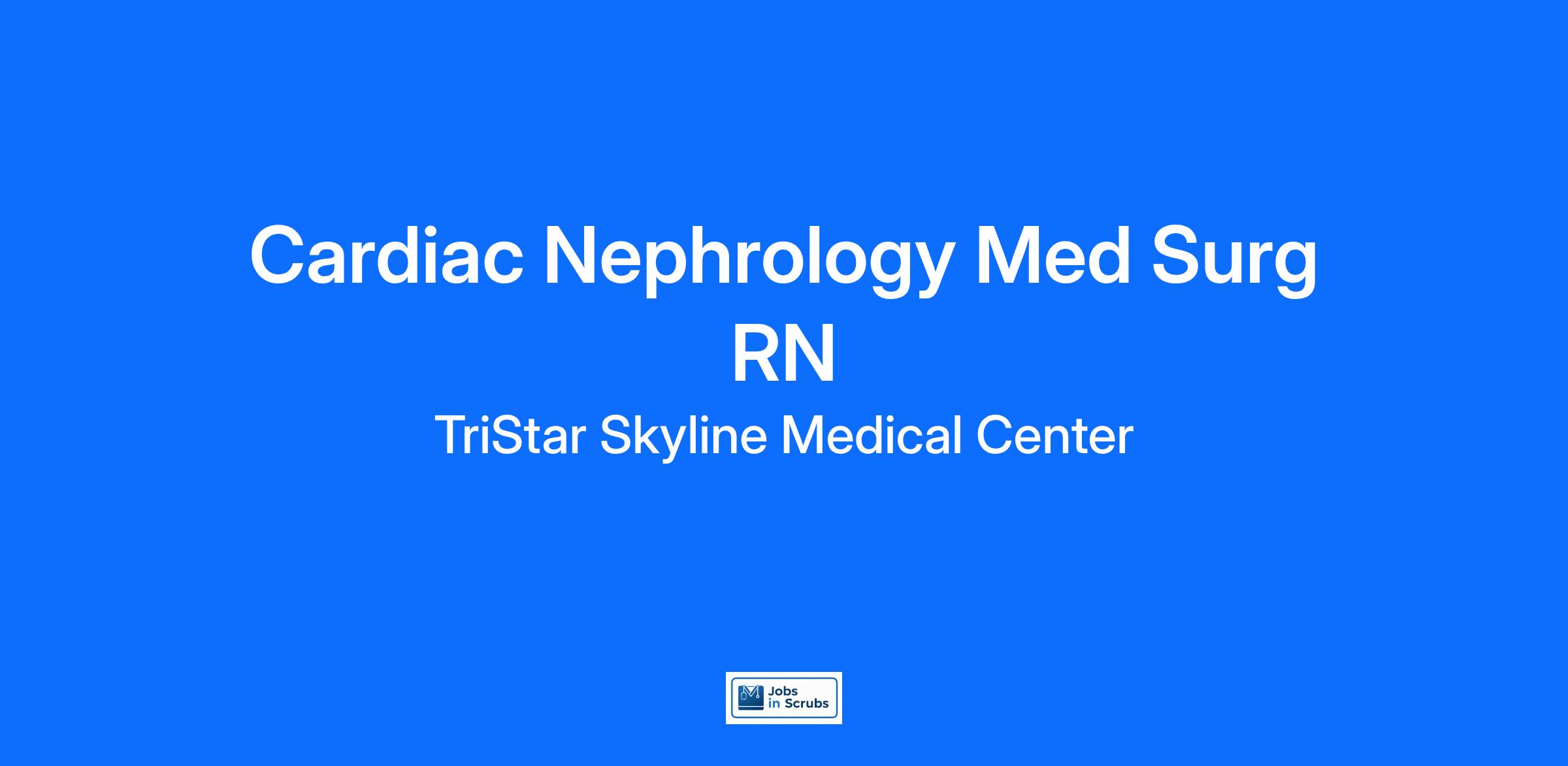 Sign-On Bonus available for qualified RN candidates!Do you currently have an opportunity to make a real impact with your work? With over 2,000 sites of care and serving over 31.2 million patient interactions every year, nurses at TriStar Skyline Medical Center have the opportunity to make a real impact. As a(an) Cardiac Nephrology MedSurg RN you can be a part of change.