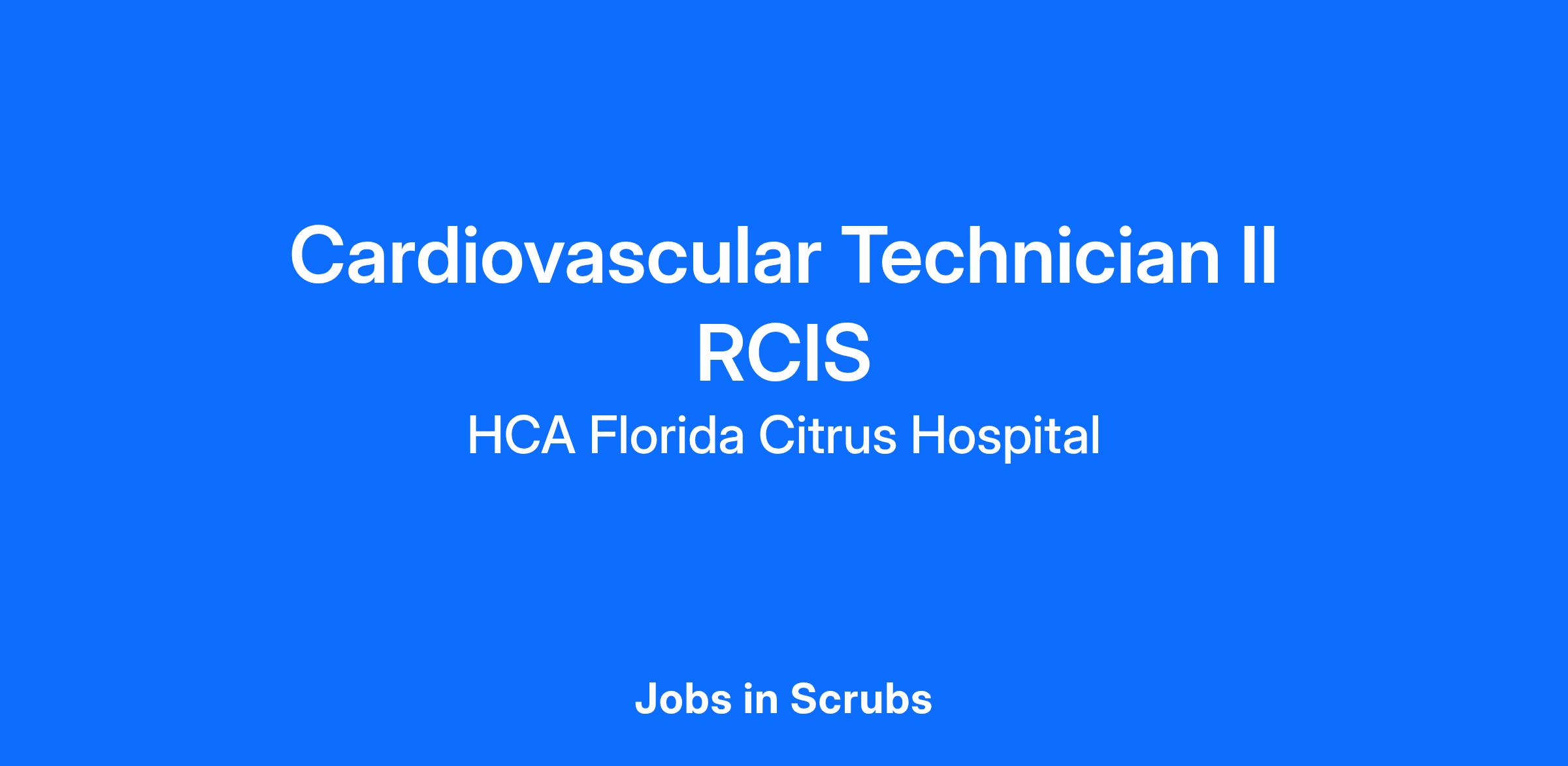 Are you passionate about the patient experience? At HCA Healthcare, we are committed to caring for patients with purpose and integrity. We care like family! Jump-start your career as a(an) Cardiovascular Technician II RCIS today with HCA Florida Citrus Hospital.