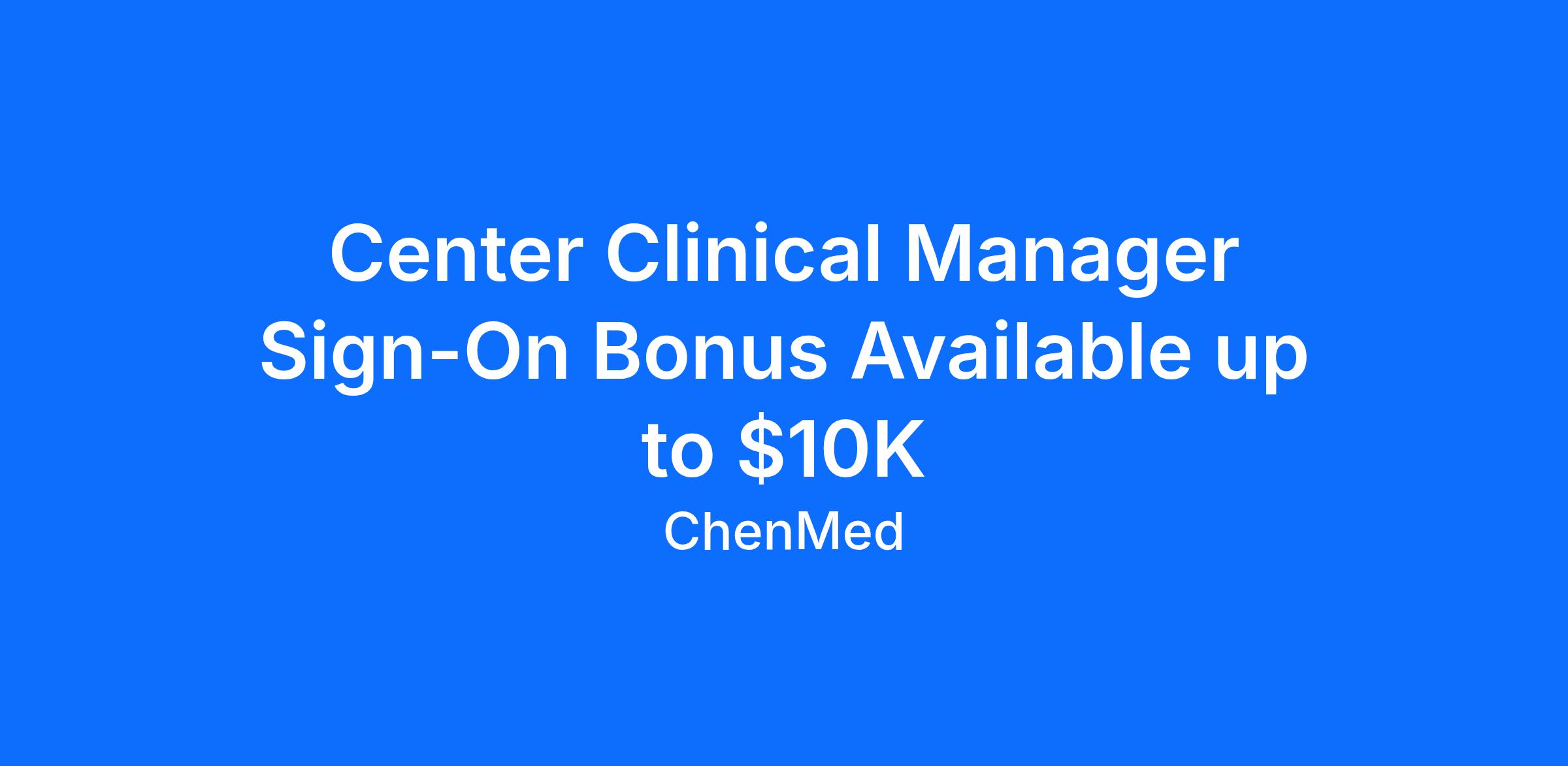 Center Clinical Manager Sign-On Bonus Available up to $10K