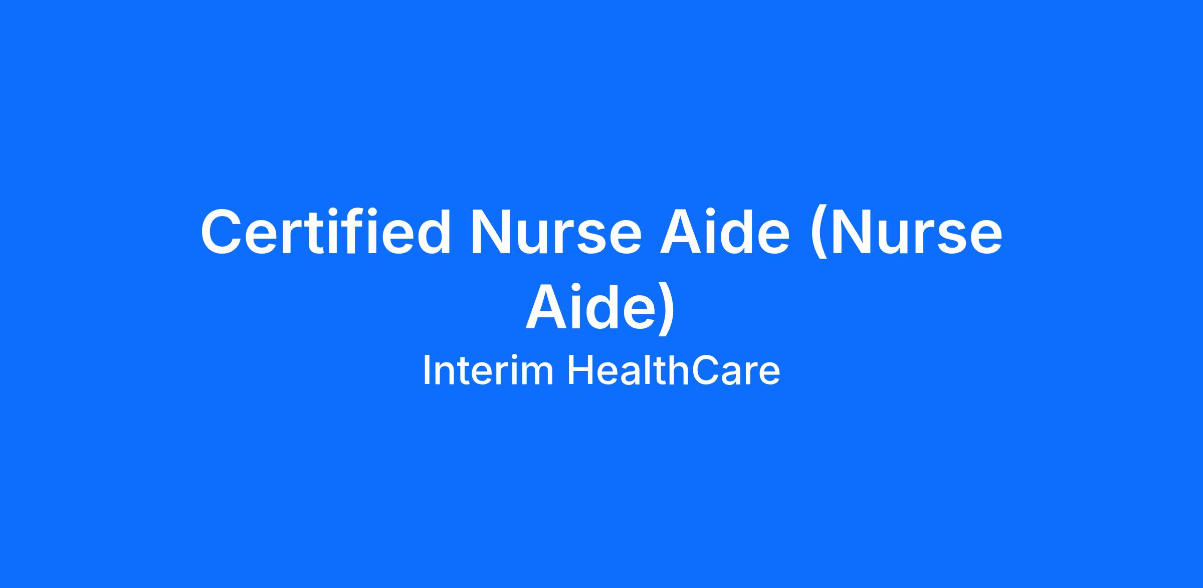 As a Certified Nurse Aide (CNA) you will be called to care when you're needed most. As part of Interim HealthCare, you'll support a full range of patient services to bring comfort and dignity to our clients.
