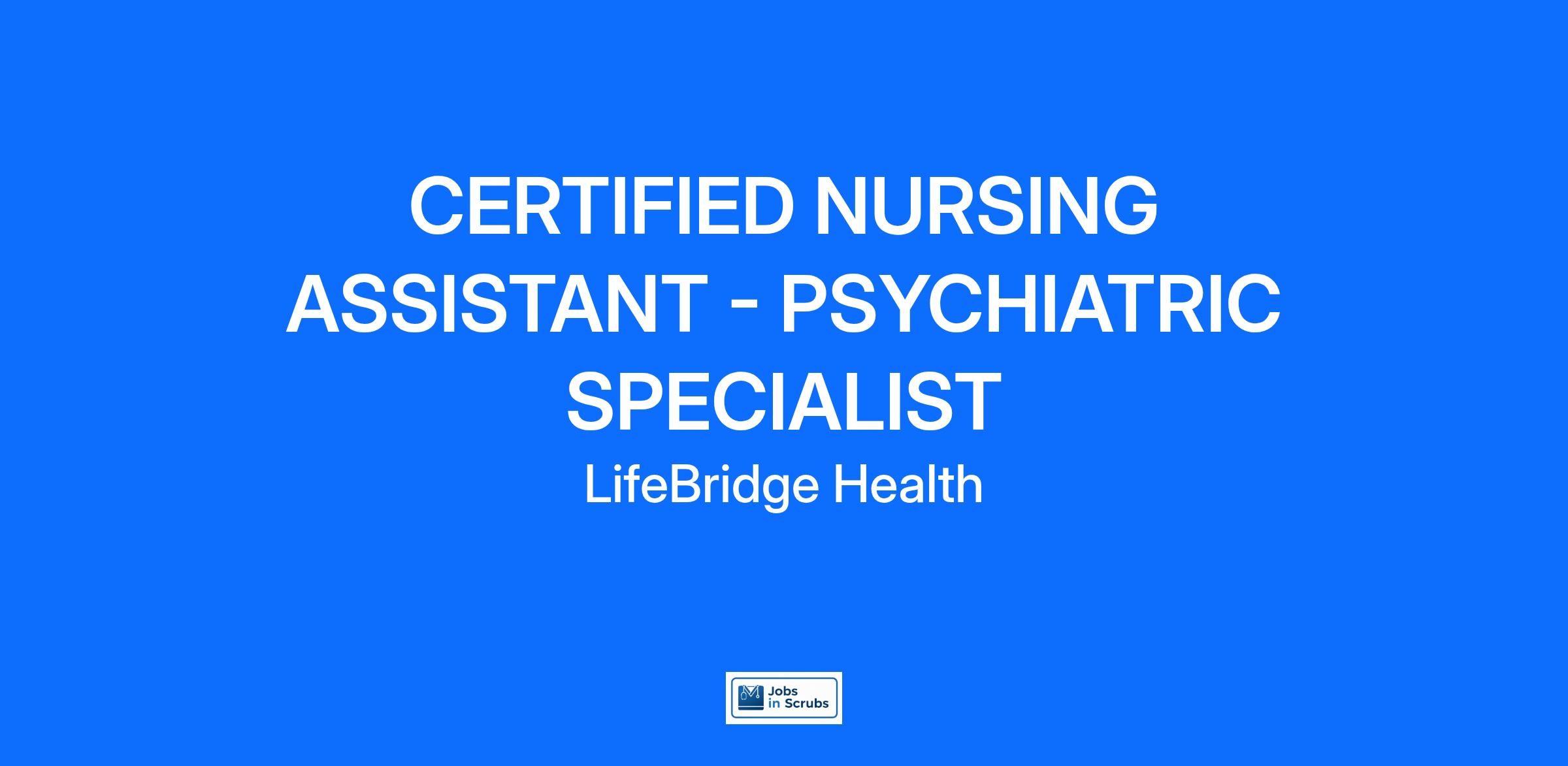 We are seeking a compassionate Psychiatric Specialist to join our dynamic Behavioral Health team. In this role, you will provide hands-on, age-appropriate care for patients in our inpatient psychiatric unit, helping them with activities of daily living (ADLs) while ensuring a safe, comfortable, and supportive environment.