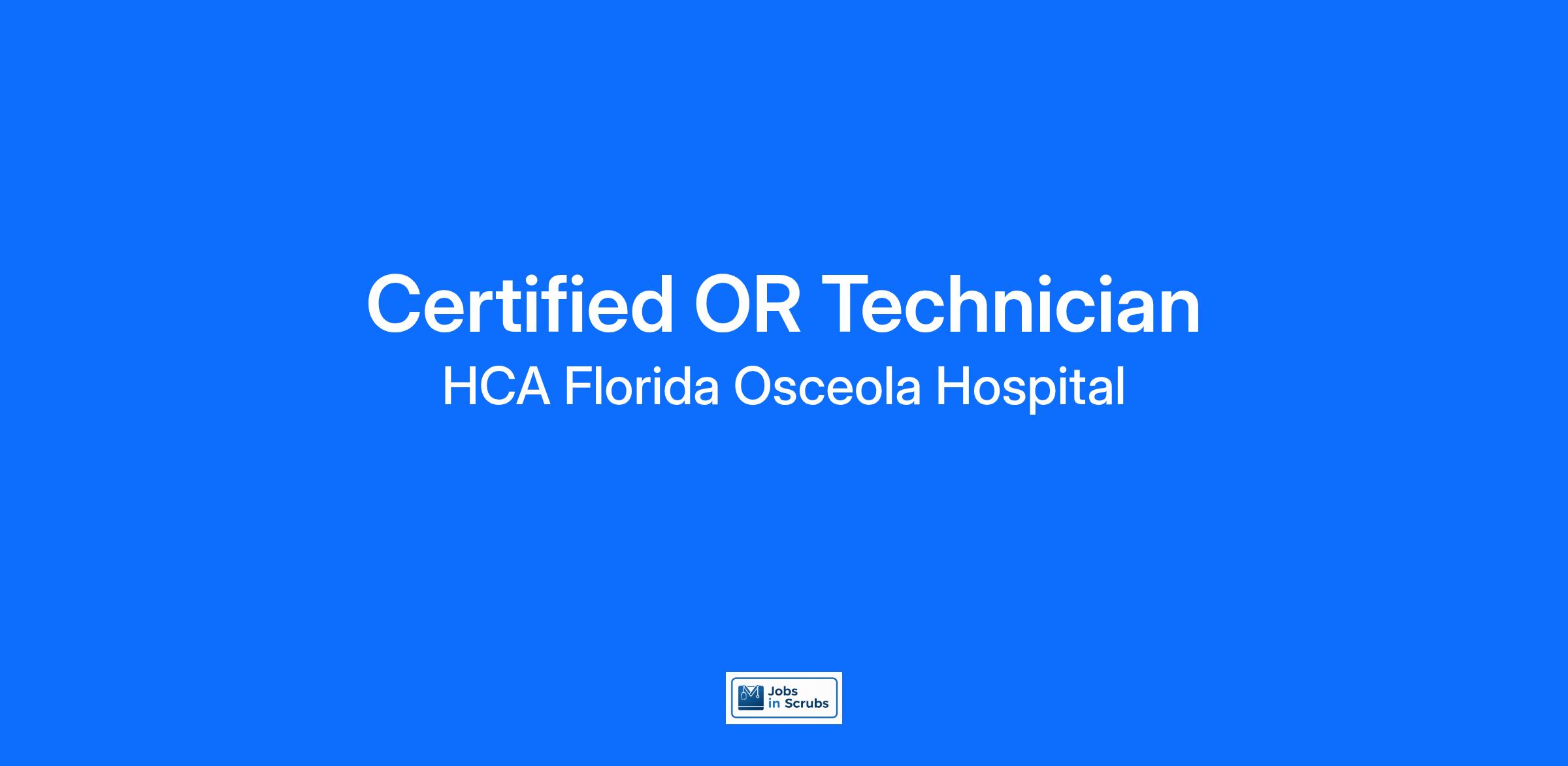 Do you want to join an organization that invests in you as a(an) Certified OR Technician? At HCA Florida Osceola Hospital, you come first. HCA Healthcare has committed up to $300 million in programs to support our incredible team members over the course of three years.