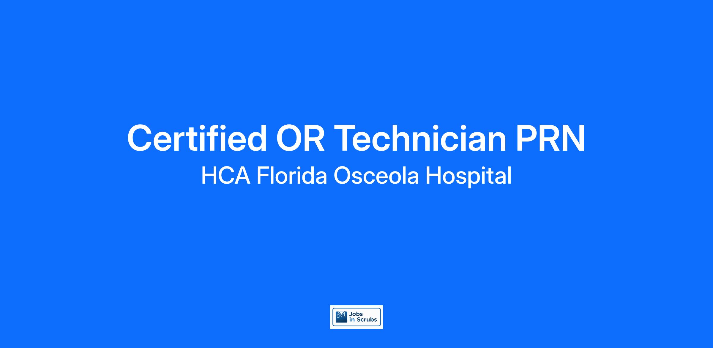 Do you have the PRN career opportunities as a(an) Certified OR Technician PRN you want with your current employer? We have an exciting opportunity for you to join HCA Florida Osceola Hospital which is part of the nation's leading provider of healthcare services, HCA Healthcare.