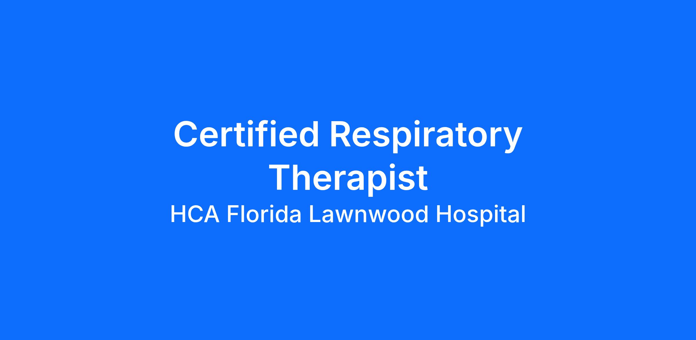 Do you have the career opportunities as a(an) Certified Respiratory Therapist Full-Time Nights you want with your current employer? We have an exciting opportunity for you to join HCA Florida Lawnwood Hospital which is part of the nation's leading provider of healthcare services, HCA Healthcare.