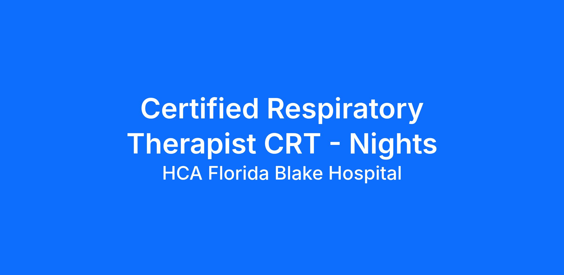 Last year our HCA Healthcare colleagues invested over 156,000 hours volunteering in our communities. As a Certified Respiratory Therapist CRT with HCA Florida Blake Hospital you can be a part of an organization that is devoted to giving back!