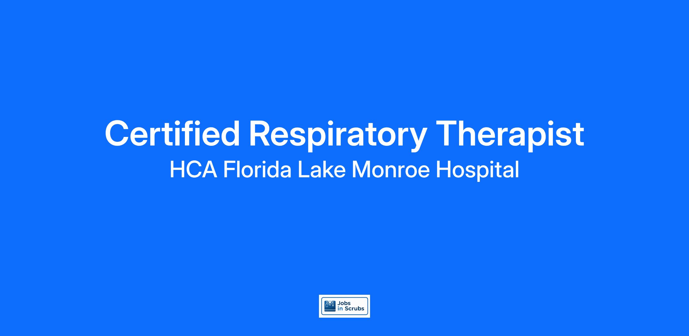 Do you want to join an organization that invests in you as a(an) Certified Respiratory Therapist? At HCA Florida Lake Monroe Hospital, you come first. HCA Healthcare has committed up to $300 million in programs to support our incredible team members over the course of three years.