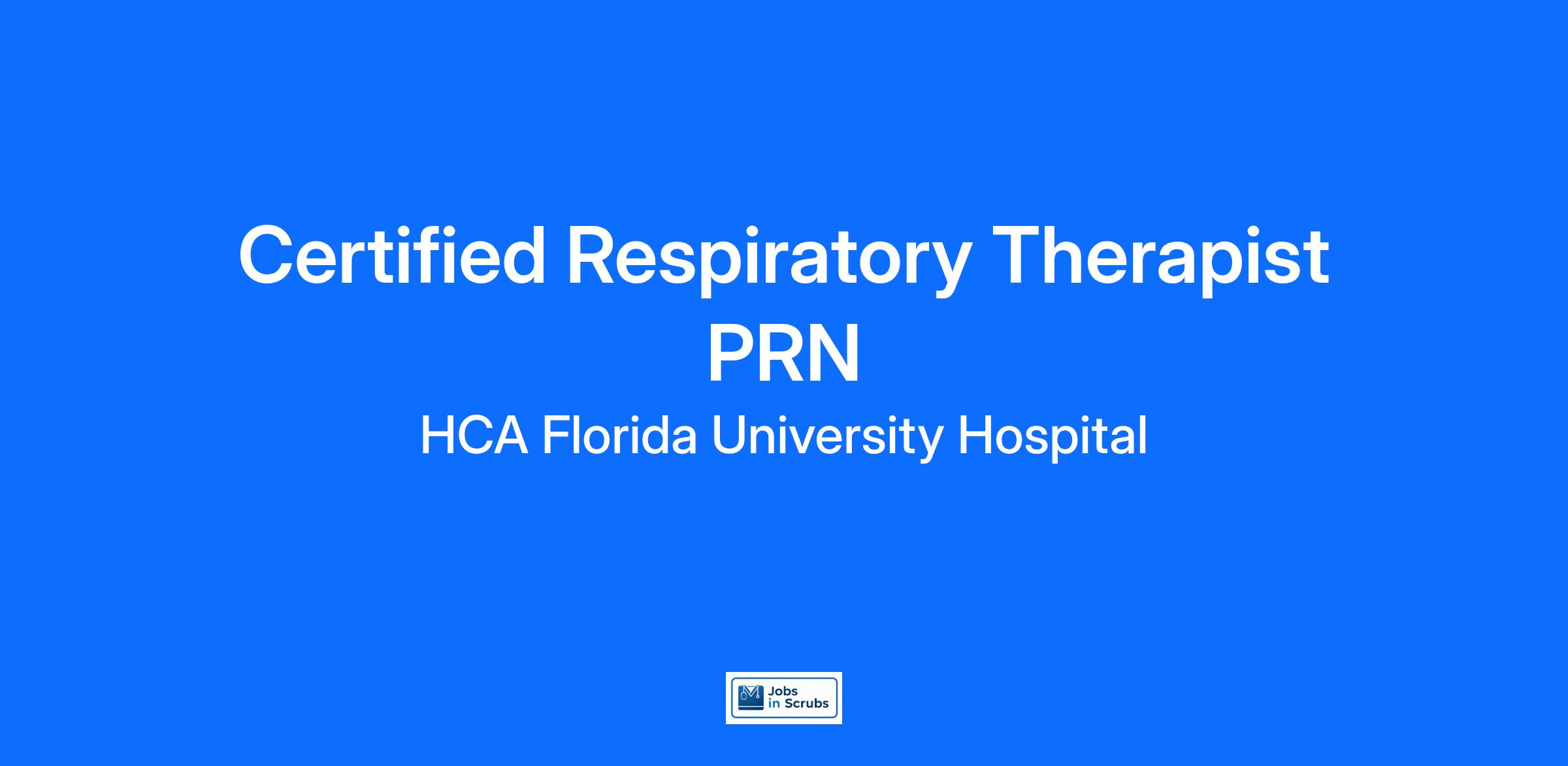Would you like to unlock your potential with a leading healthcare provider dedicated to the growth and development of our colleagues? Join the HCA Florida University Hospital family! We will give you the tools and resources you need to succeed in our organization. We are looking for an enthusiastic Certified Respiratory Therapist PRN to help us reach our goals. Unlock your potential!