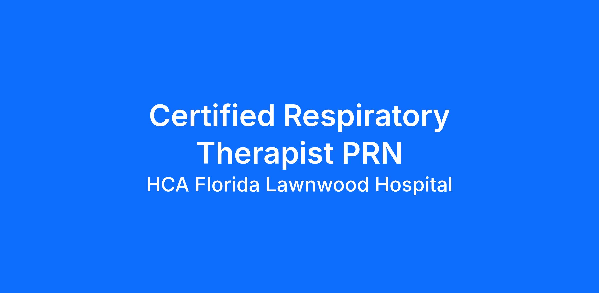 Experience the HCA Healthcare difference where colleagues are trusted, valued members of our healthcare team. Grow your career with an organization committed to delivering respectful, compassionate care, and where the unique and intrinsic worth of each individual is recognized. Submit your application for the opportunity below:Certified Respiratory Therapist PRNHCA Florida Lawnwood Hospital.