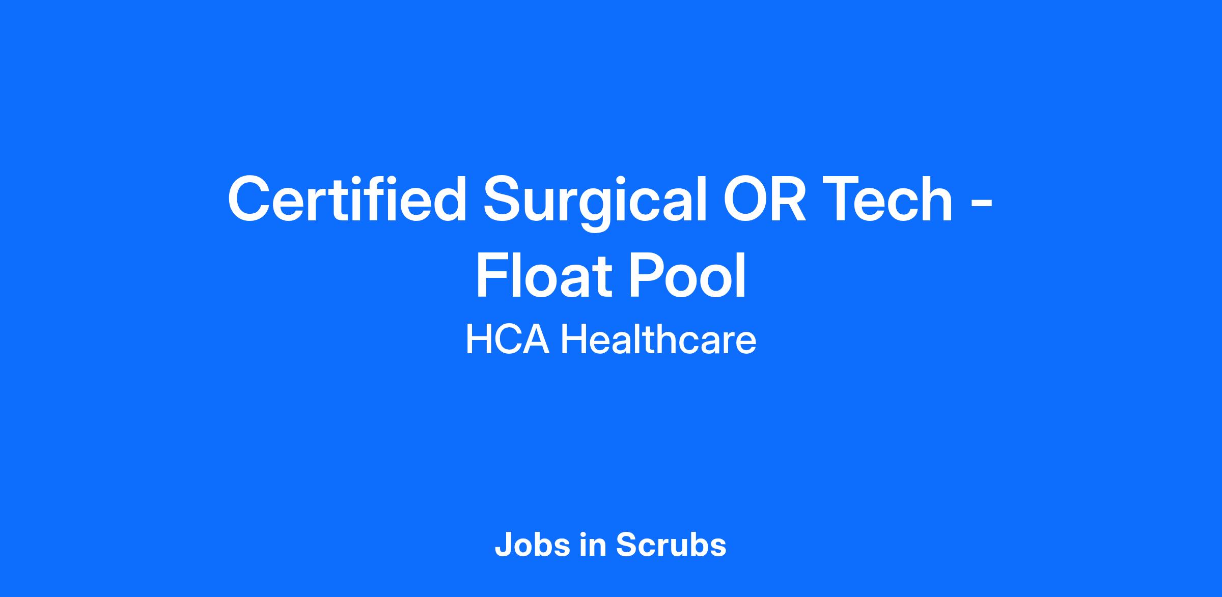 Do you want to join an organization that invests in you as a(an) Certified Surgical OR Tech - Float Pool? At HCA Healthcare, you come first. HCA Healthcare has committed up to $300 million in programs to support our incredible team members over the course of three years.