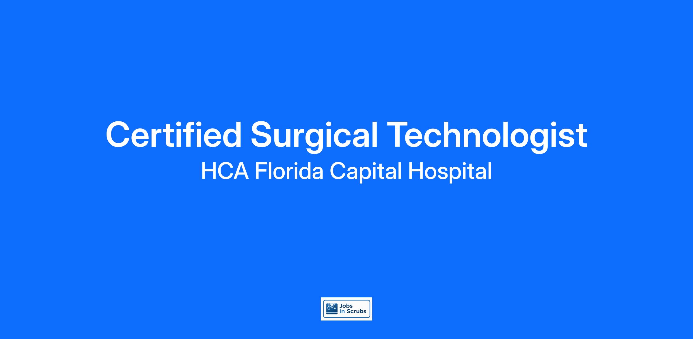 Experience the HCA Healthcare difference where colleagues are trusted, valued members of our healthcare team. Grow your career with an organization committed to delivering respectful, compassionate care, and where the unique and intrinsic worth of each individual is recognized. Submit your application for the opportunity below:Certified Surgical TechnologistHCA Florida Capital Hospital