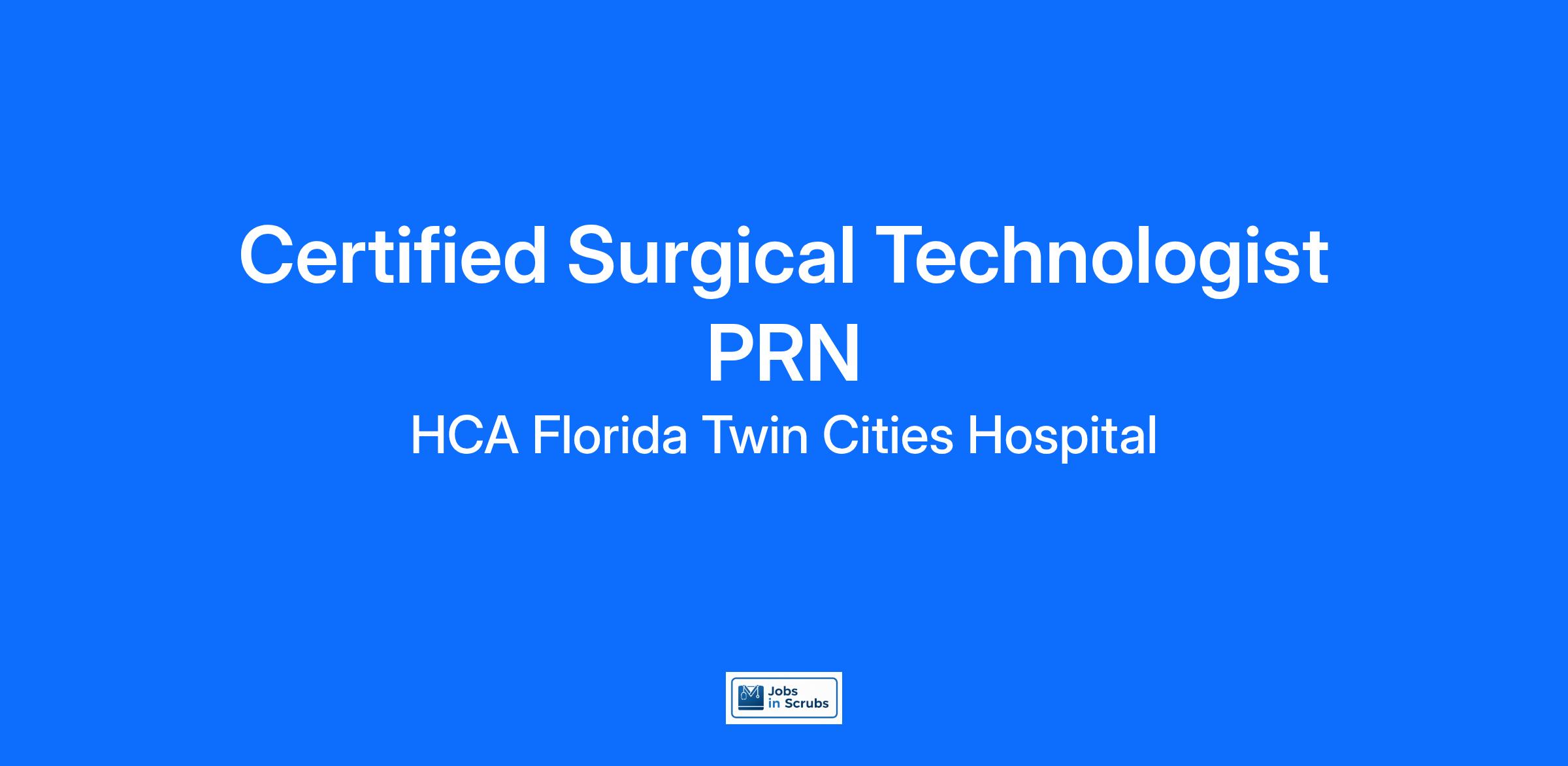 Are you passionate about the patient experience? At HCA Healthcare, we are committed to caring for patients with purpose and integrity. We care like family! Jump-start your career as a(an) Certified Surgical Technologist PRN today with HCA Florida Twin Cities Hospital.