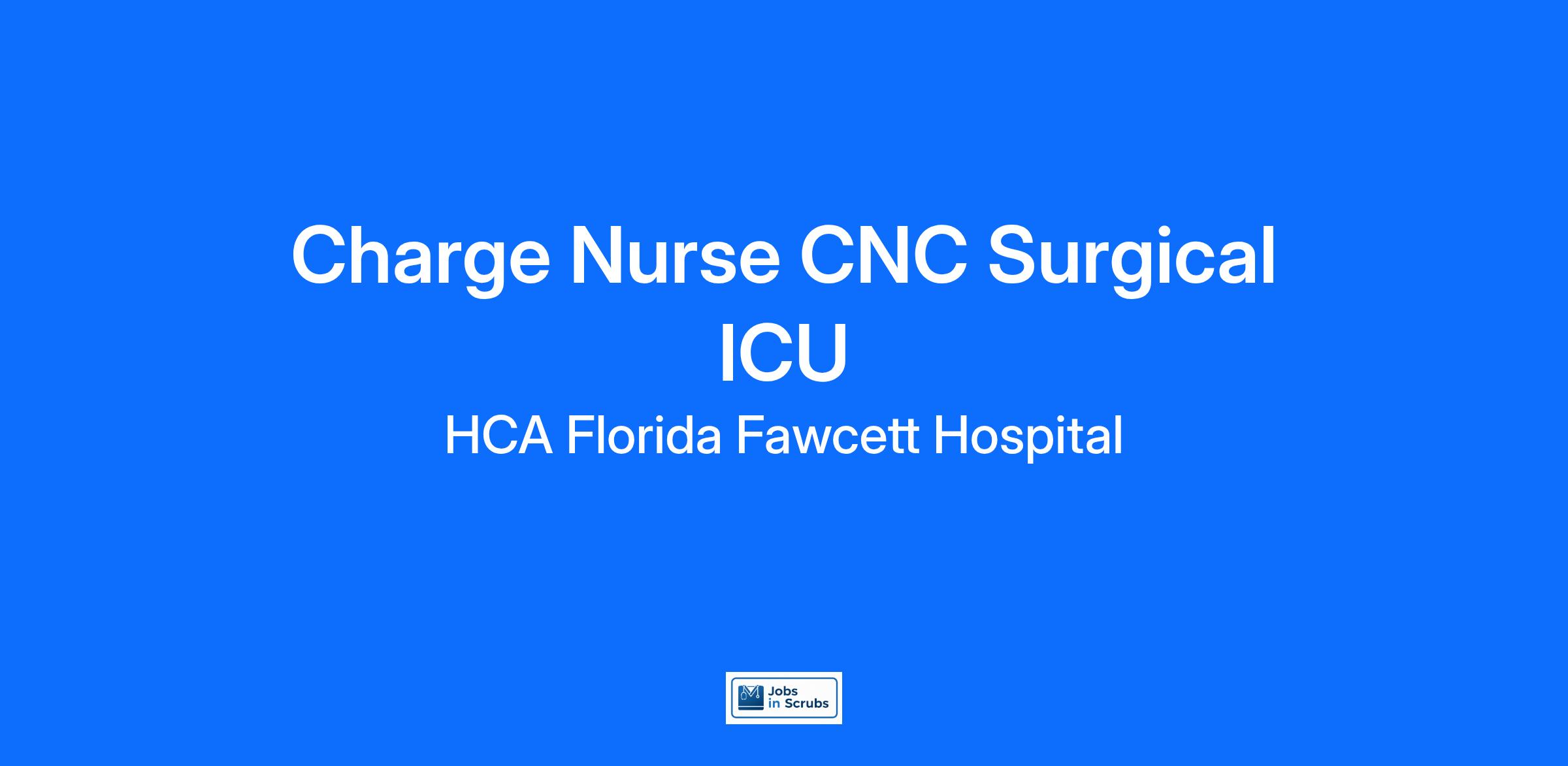 Are you looking for a place to deliver excellent care patients deserve? At HCA Florida Fawcett Hospital we support our colleagues in their positions. Join our Team as a(an) Charge Nurse CNC Surgical ICU and access programs to assist with every stage of your career.
