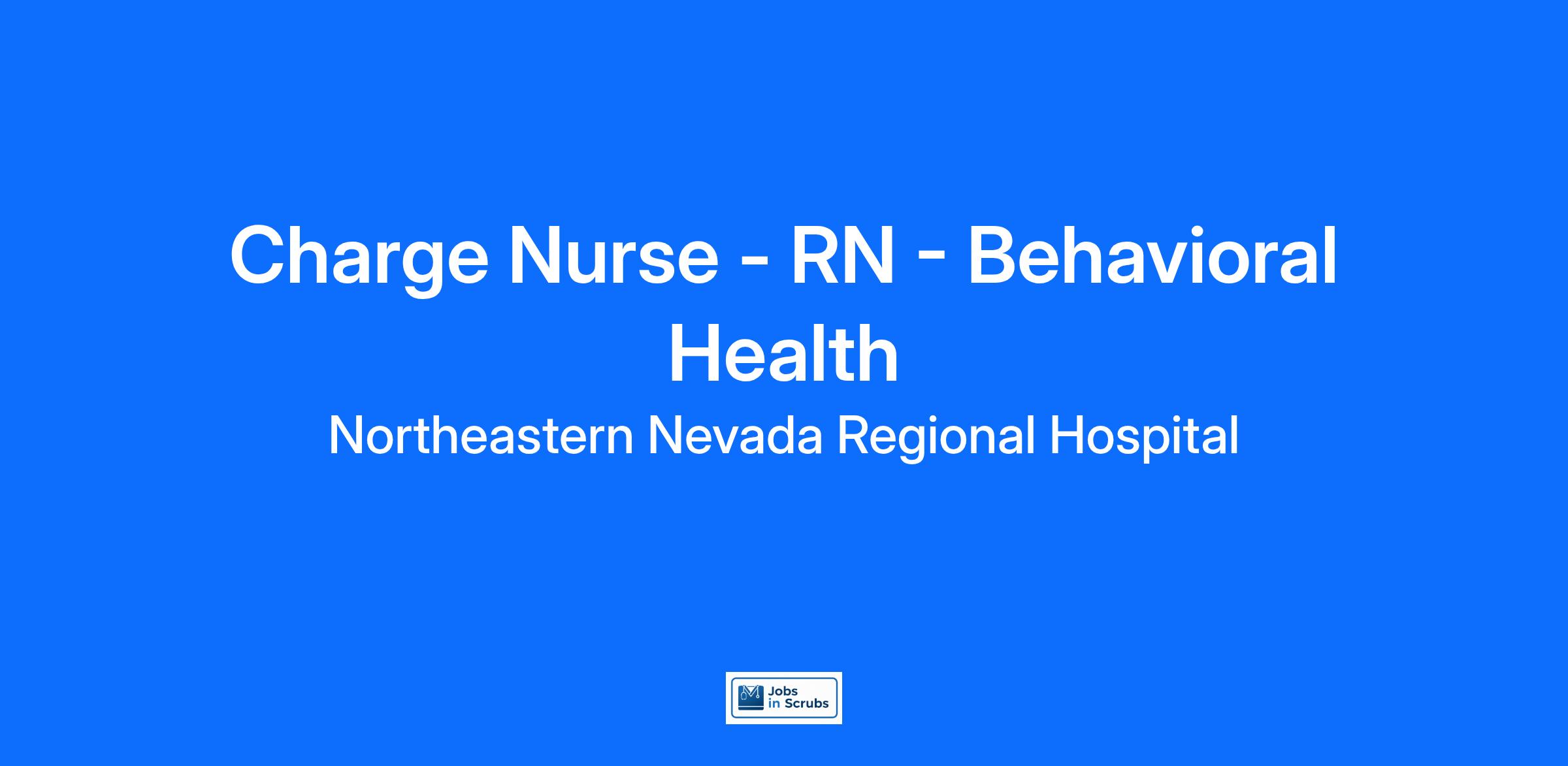 Northeastern Nevada Regional Hospital is part of Lifepoint Health, a diversified healthcare delivery network with facilities coast to coast. We are driven by a profound commitment to prioritize your well-being so you can provide exceptional care to others. As an RN, Charge Nurse, joining our Behavioral Health Unit team, you're embracing a vital mission dedicated to making communities healthier ®. Join us on this meaningful journey where your skills, compassion and dedication will make a remarkable difference in the lives of those we serve.