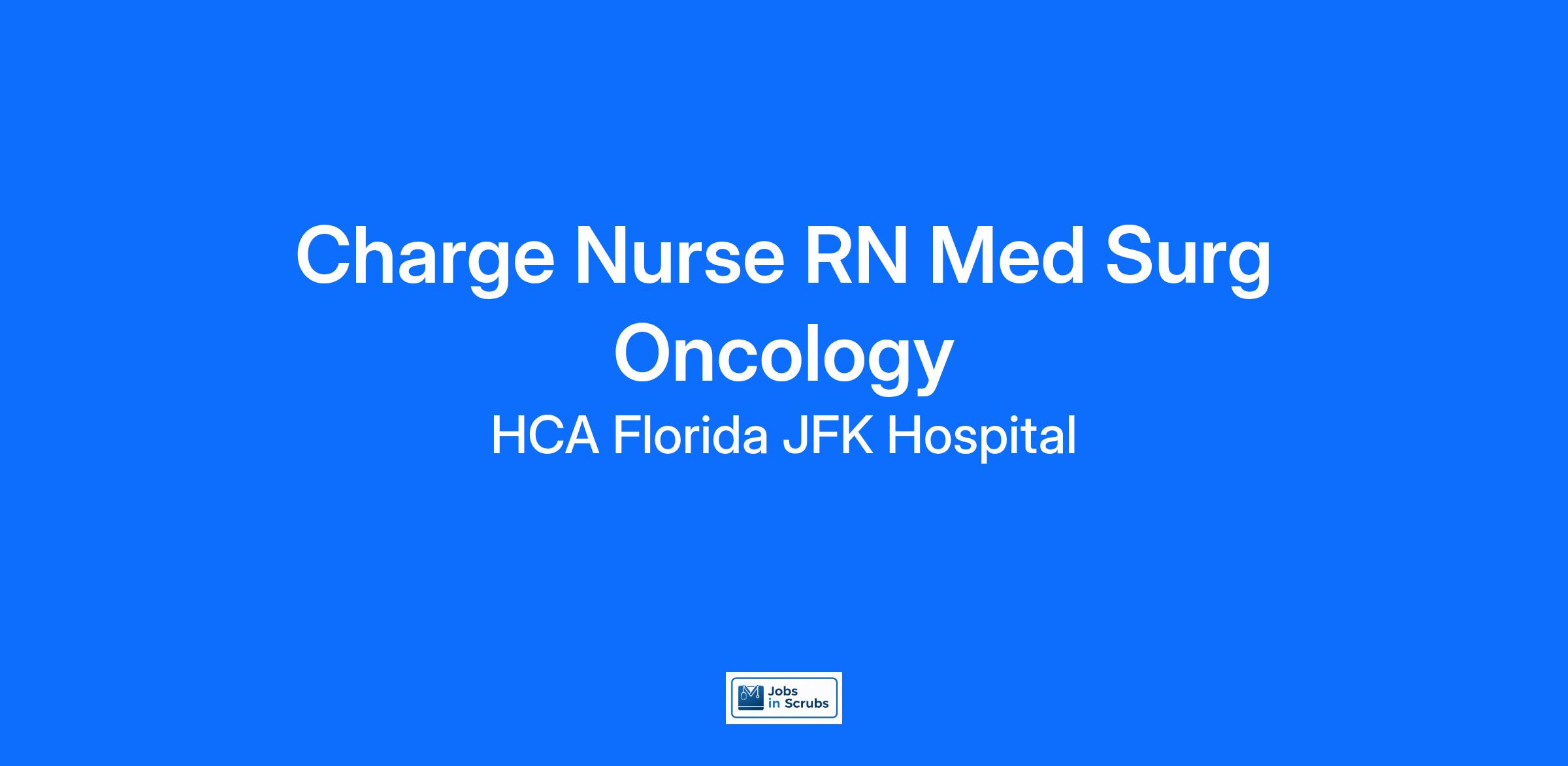 Are you looking for a place to deliver excellent care patients deserve? At HCA Florida JFK Hospital we support our colleagues in their positions. Join our Team as a(an) Charge Nurse RN Med Surg Oncology and access programs to assist with every stage of your career. This position may be eligible for a sign on bonus.