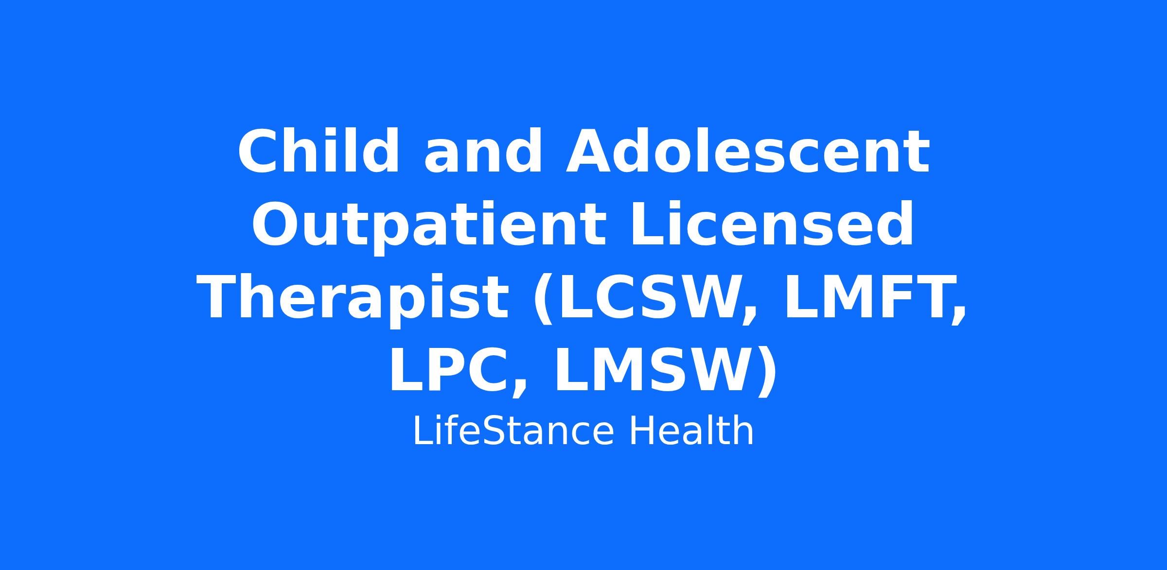 Child and Adolescent Outpatient Licensed Therapist (LCSW, LMFT, LPC, LMSW)
