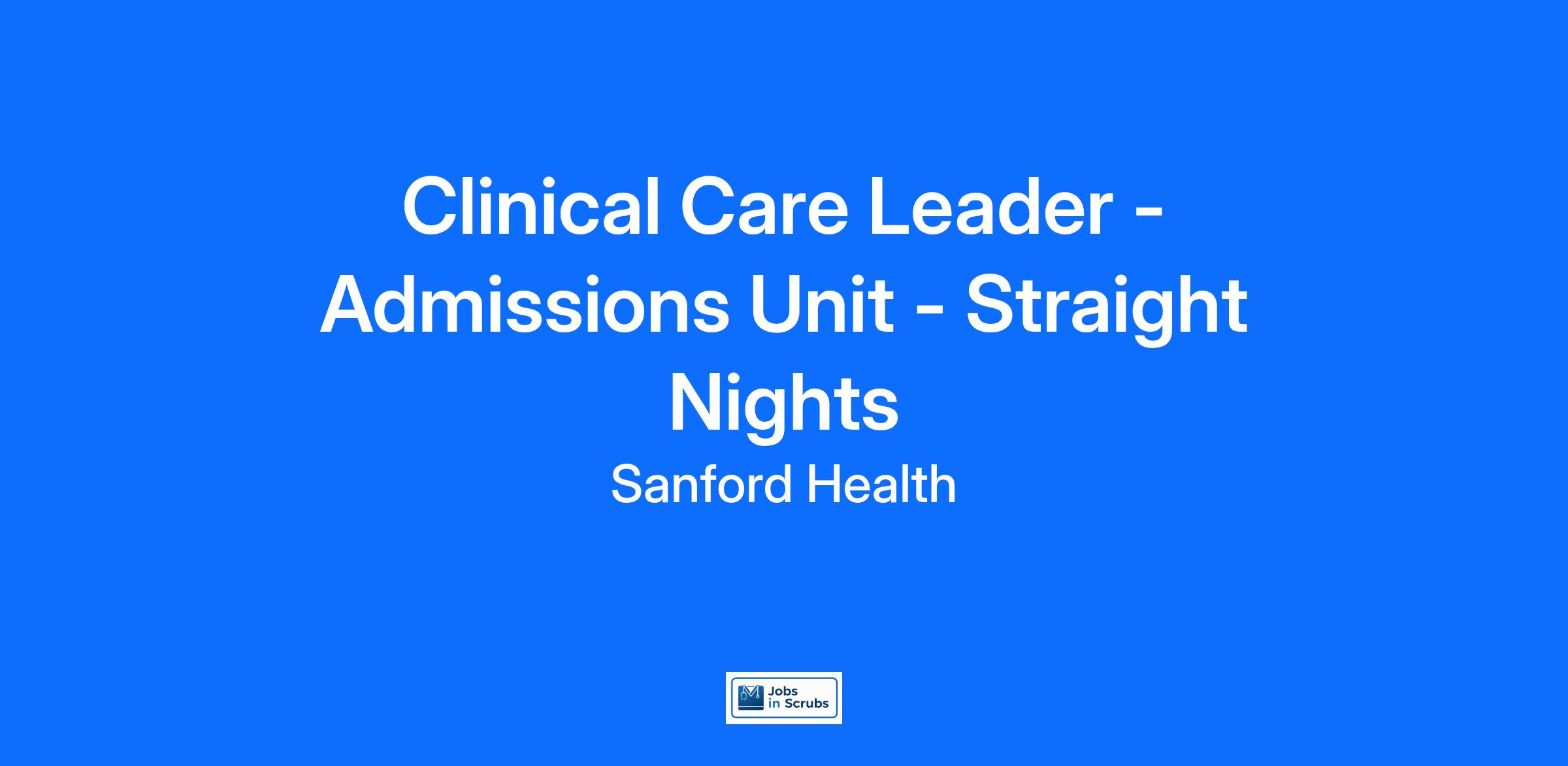 Clinical Care Leader - Admissions Unit - Straight Nights