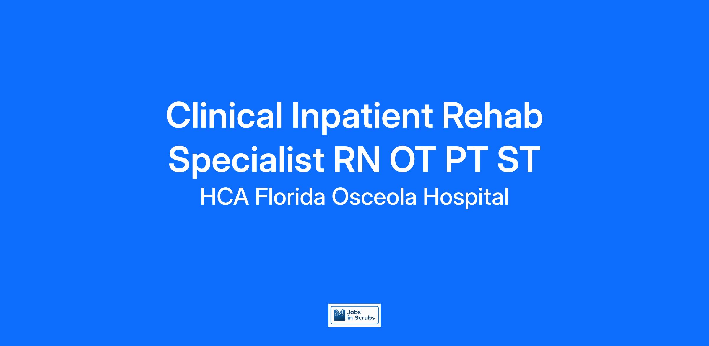 Are you passionate about the patient experience? At HCA Healthcare, we are committed to caring for patients with purpose and integrity. We care like family! Jump-start your career as a(an) Clinical Inpatient Rehab Specialist today with HCA Florida Osceola Hospital.
