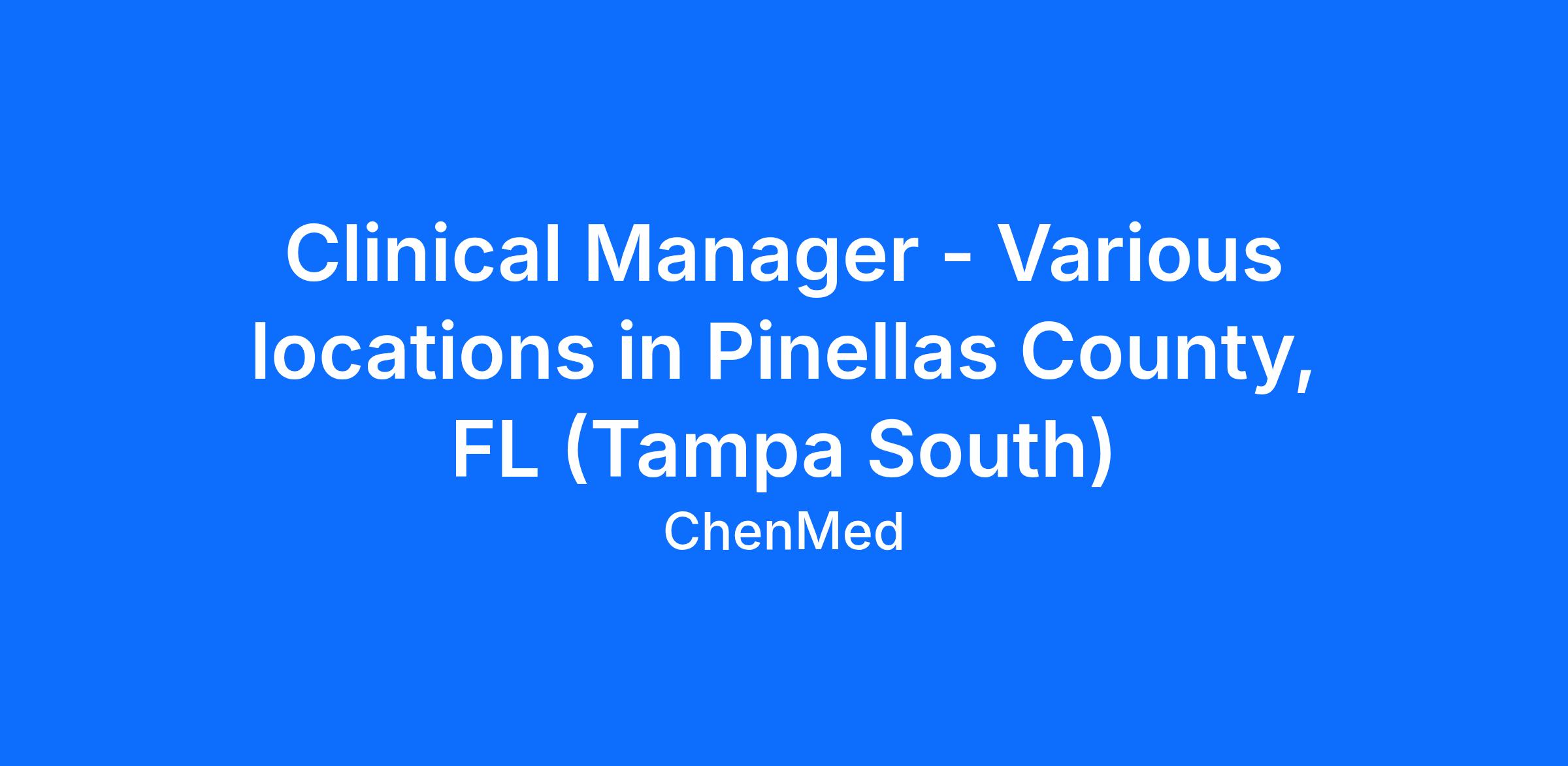 Clinical Manager - Various locations in Pinellas County, FL (Tampa South)