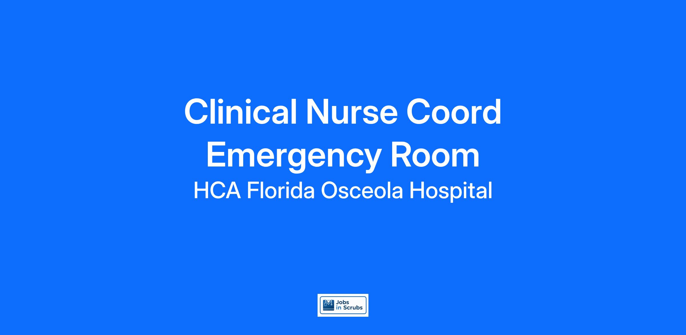 Are you passionate about the patient experience? At HCA Healthcare, we are committed to caring for patients with purpose and integrity. We care like family! Jump-start your career as a(an) Clinical Nurse Coord Emergency Room today with HCA Florida Osceola Hospital.