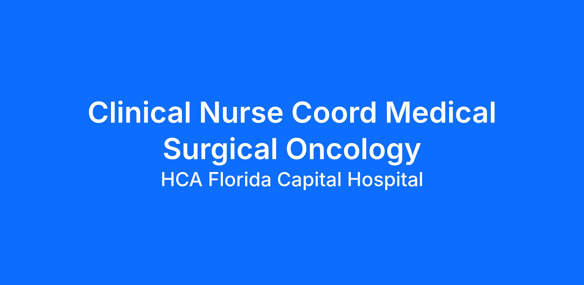 Do you have the career opportunities as a Clinical Nurse Coord Medical Surgical Oncology you want in your current role? We invest in what matters most to nurses like you – at home, at work, and at every stage in your career. We have an exciting opportunity for you to join HCA Florida Capital Hospital which is a part of the nation’s leading provider of healthcare services, HCA Healthcare.