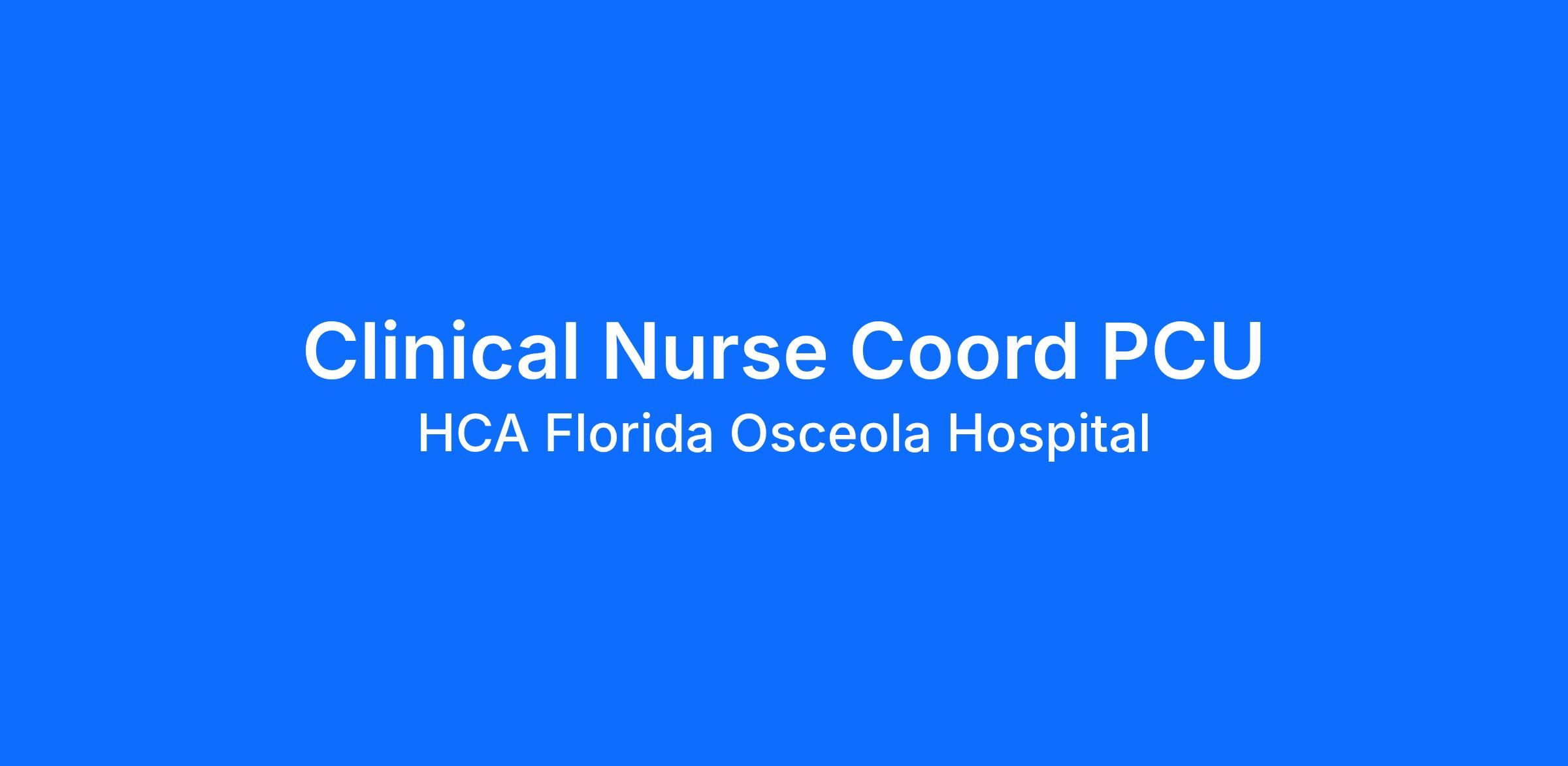 Do you want to join an organization that invests in you as a(an) Clinical Nurse Coord PCU? At HCA Florida Osceola Hospital, you come first. HCA Healthcare has committed up to $300 million in programs to support our incredible team members over the course of three years.