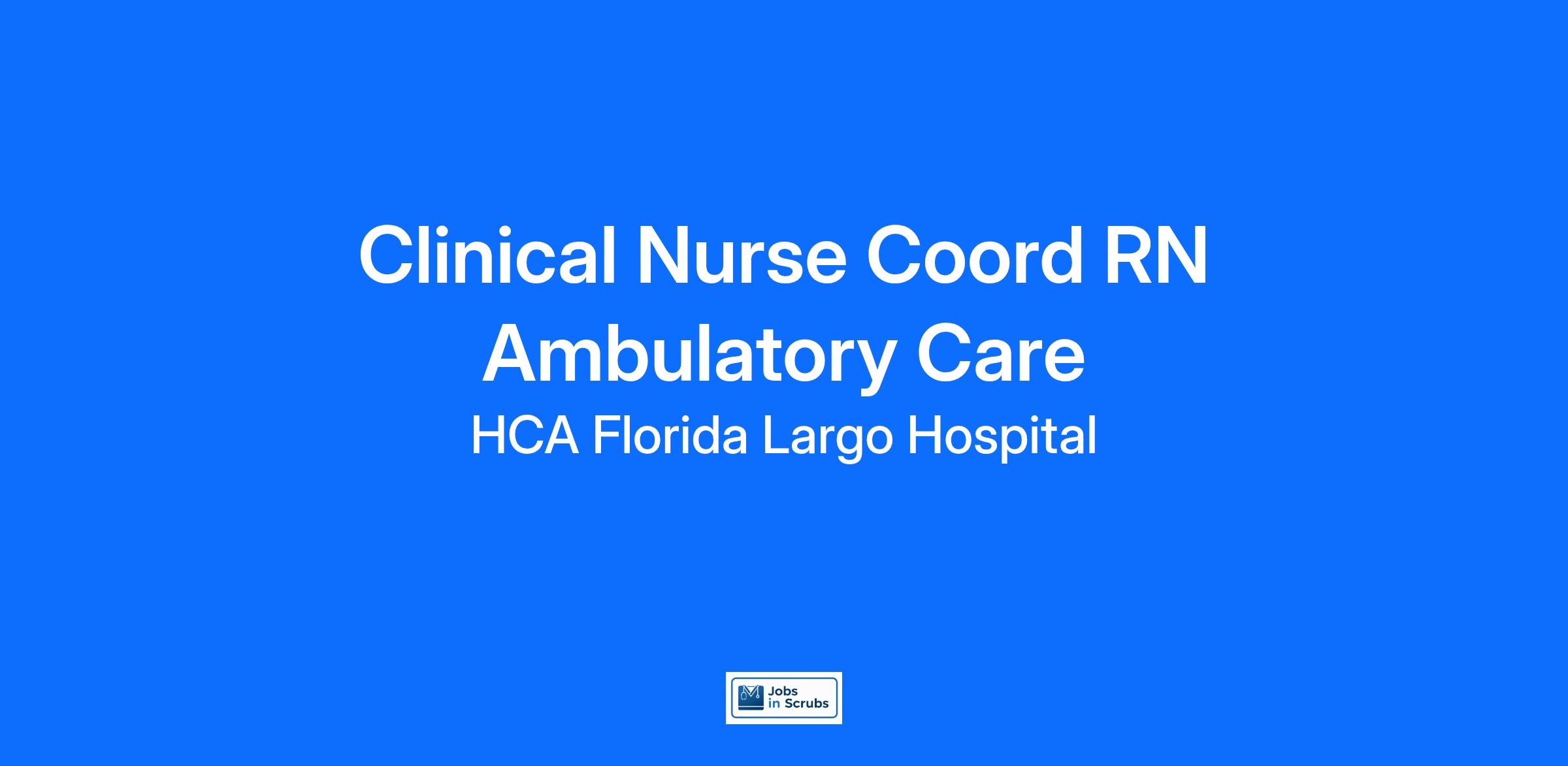 Are you looking for a place to deliver excellent care patients deserve? At HCA Florida Largo Hospital we support our colleagues in their positions. Join our Team as a(an) Clinical Nurse Coord RN Ambulatory Care and access programs to assist with every stage of your career.
