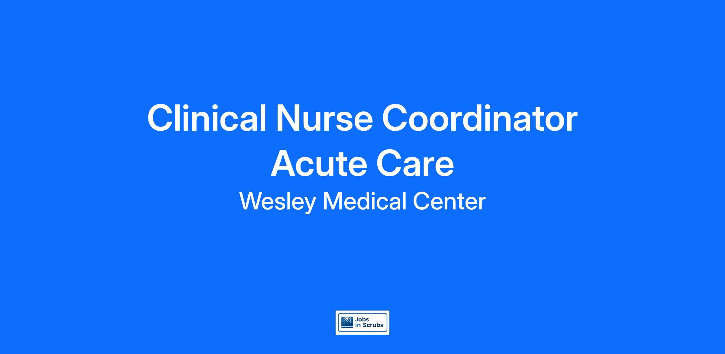 Do you have the career opportunities as a(an) Clinical Nurse Coordinator Acute Care you want in your current role? We invest in what matters most to nurses like you – at home, at work, and at every stage in your career. We have an exciting opportunity for you to join Wesley Medical Center which is a part of the nation’s leading provider of healthcare services, HCA Healthcare.