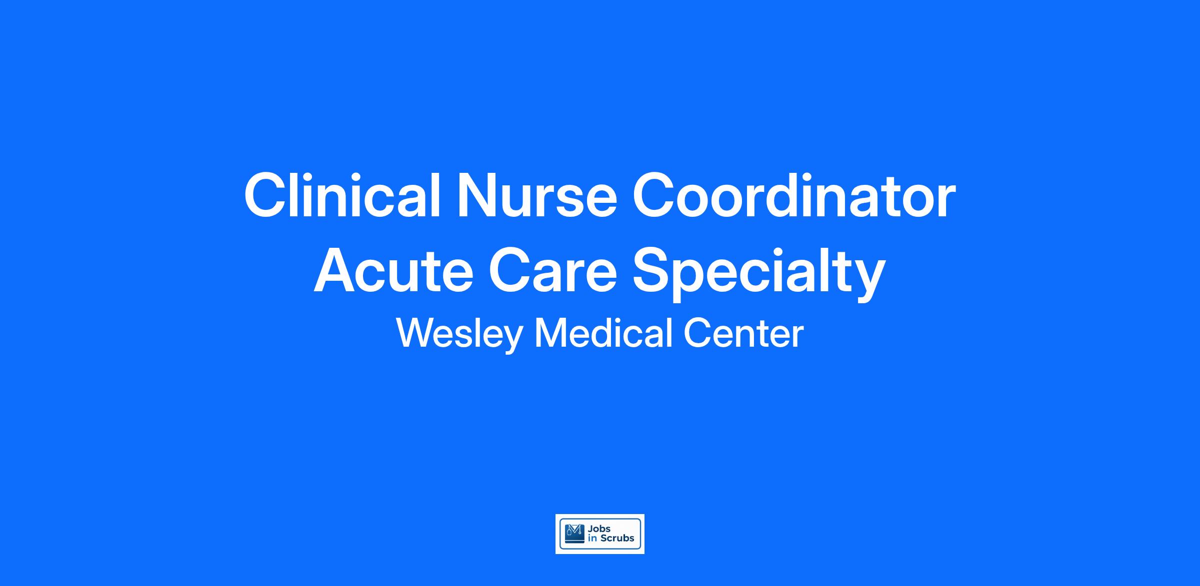 Do you have the career opportunities as a(an) Clinical Nurse Coordinator Acute Care Specialty you want in your current role? We invest in what matters most to nurses like you – at home, at work, and at every stage in your career. We have an exciting opportunity for you to join Wesley Medical Center which is a part of the nation’s leading provider of healthcare services, HCA Healthcare.