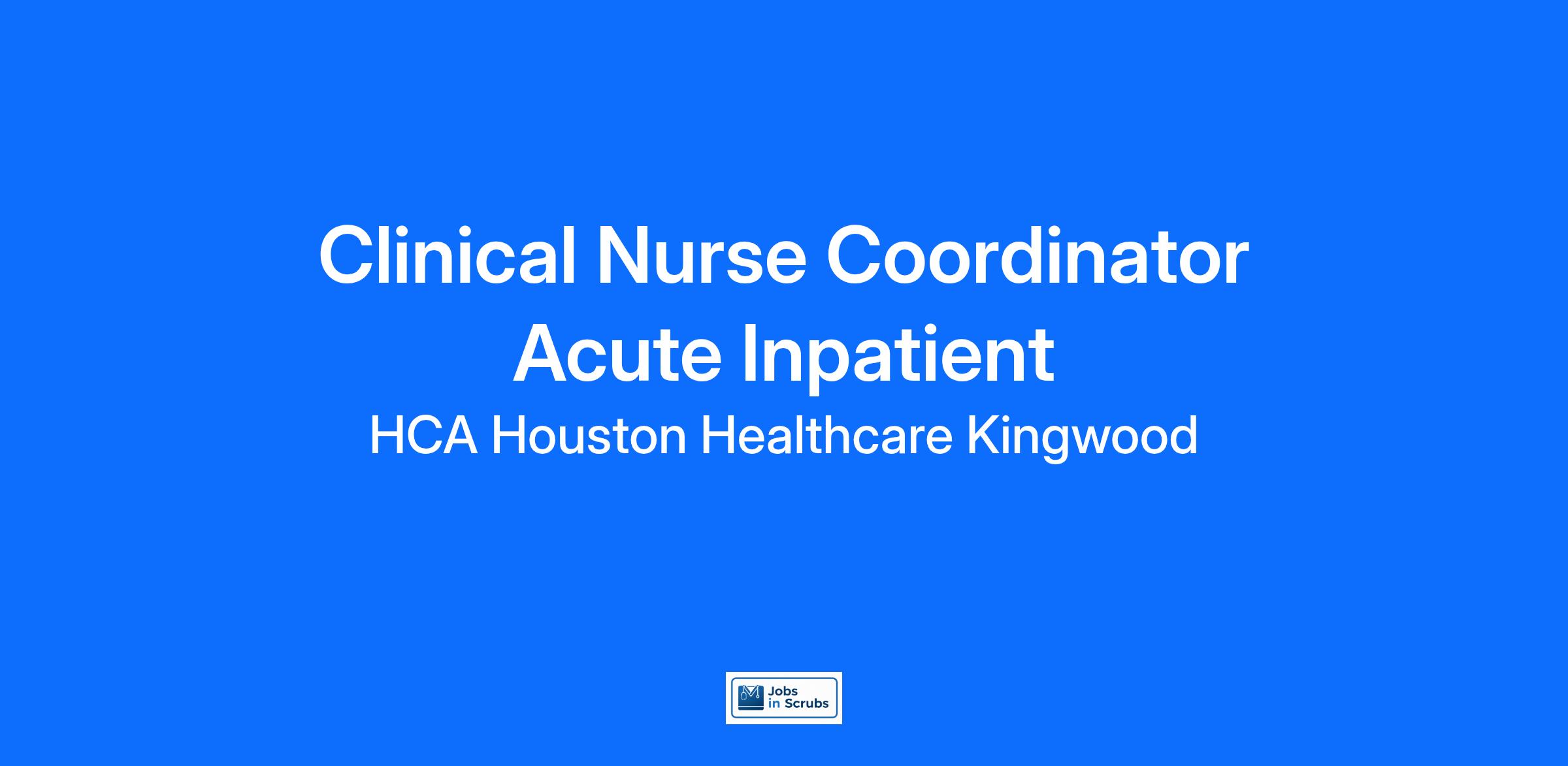 Do you want to be appreciated daily? Our nurses are celebrated for being on the front line, empathetic for patients. At HCA Houston Healthcare Kingwood our nurses set us apart from any other healthcare provider. We are seeking a(an) Clinical Nurse Coordinator RN Acute Inpatient to join our healthcare family.