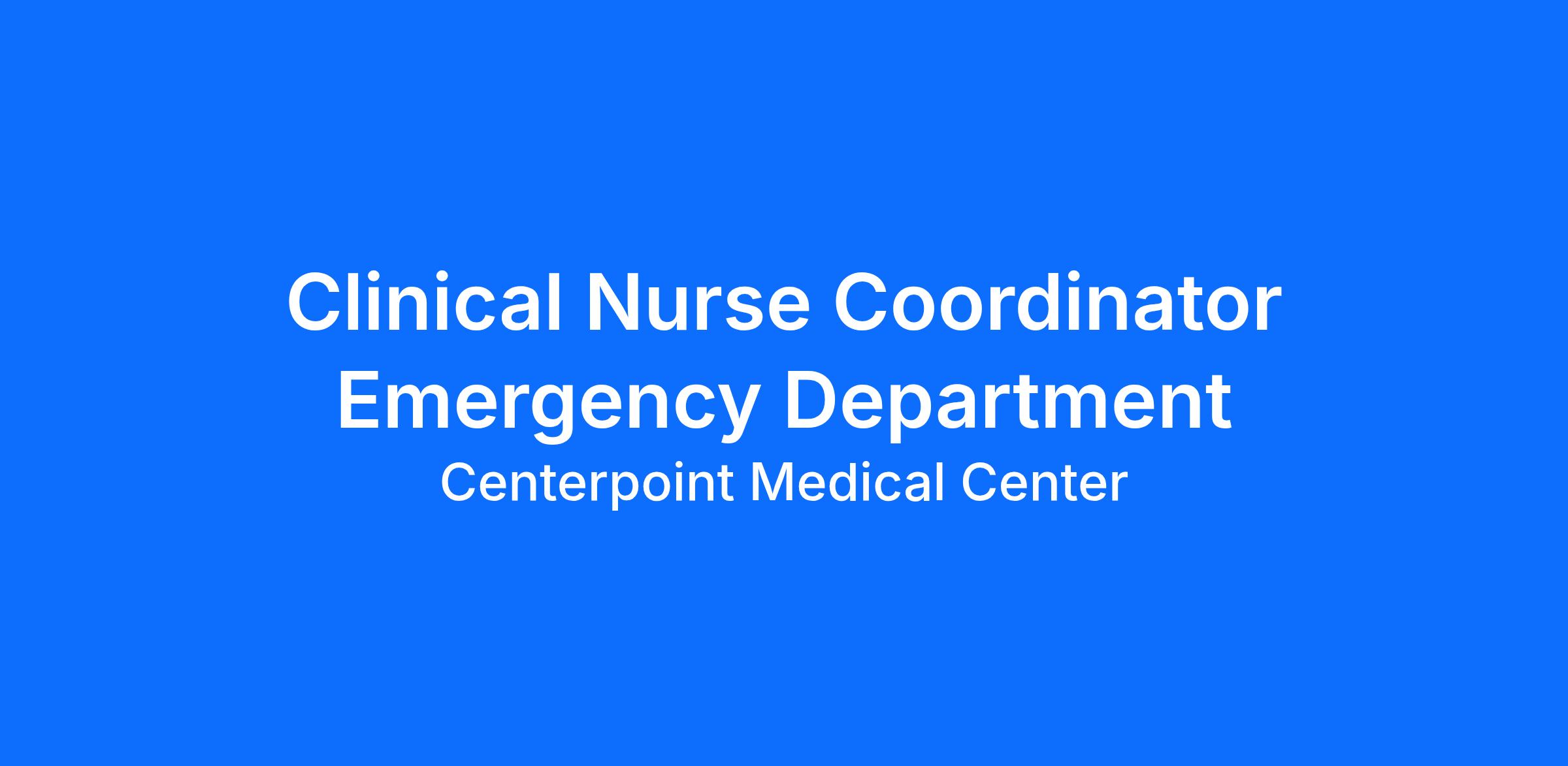 Do you have the career opportunities as a(an) Clinical Nurse Coordinator Emergency Department you want in your current role? We invest in what matters most to nurses like you – at home, at work, and at every stage in your career. We have an exciting opportunity for you to join Centerpoint Medical Center which is a part of the nation’s leading provider of healthcare services, HCA Healthcare.