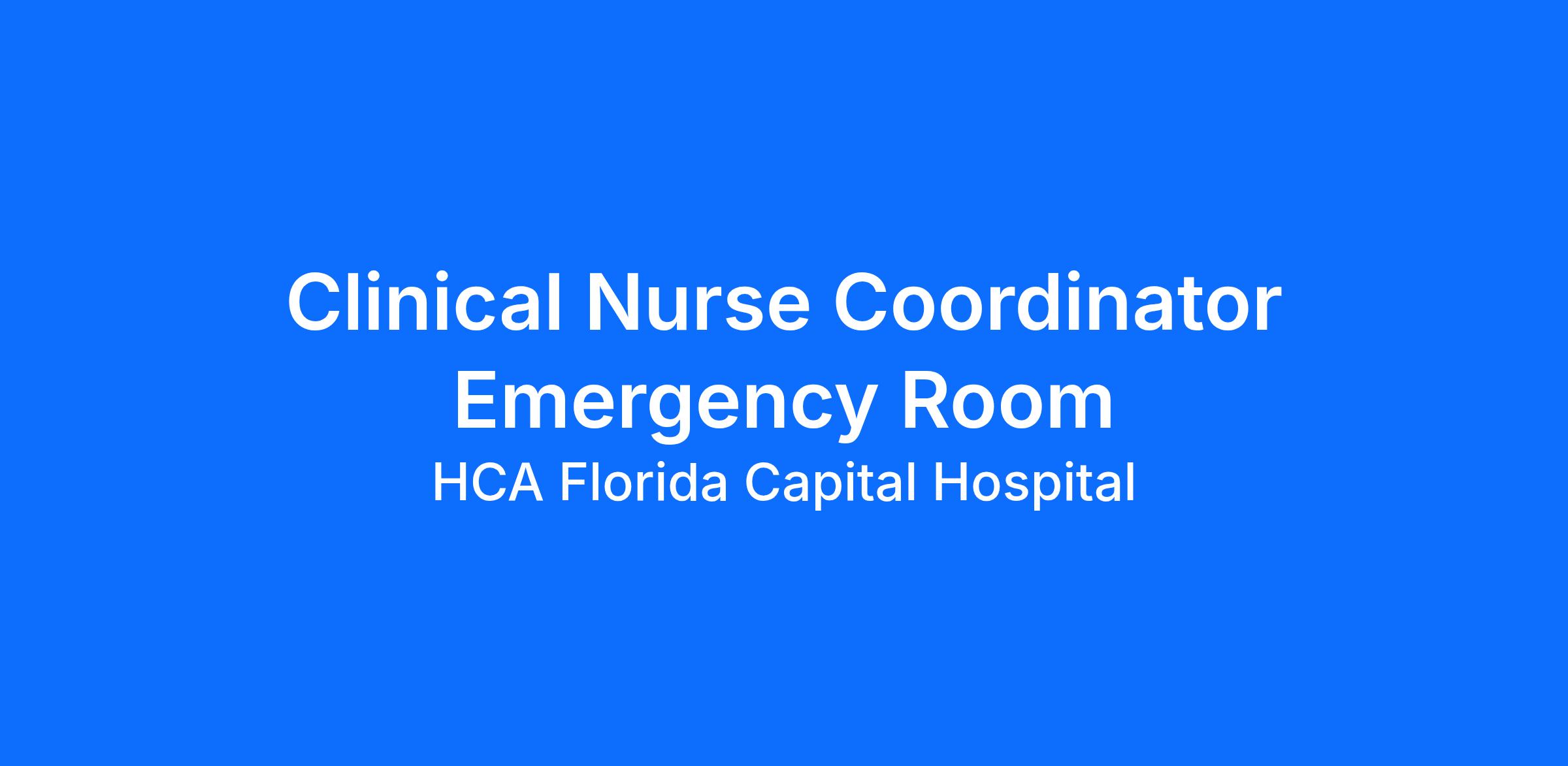 Are you looking for a place to deliver excellent care patients deserve? At HCA Florida Capital Hospital we support our colleagues in their positions. Join our Team as a(an) Clinical Nurse Coordinator Emergency Room and access programs to assist with every stage of your career.