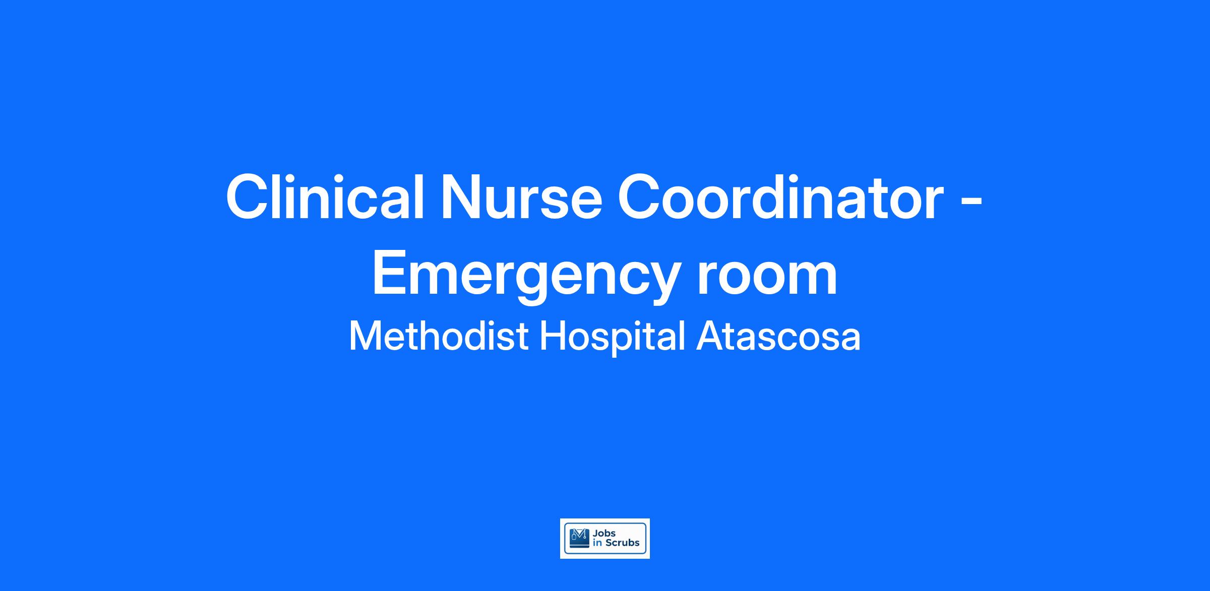 Do you want to be appreciated daily? Our nurses are celebrated for being on the front line, empathetic for patients. At Methodist Hospital Atascosa our nurses set us apart from any other healthcare provider. We are seeking a(an) Clinical Nurse Coordinator - Emergency room to join our healthcare family.