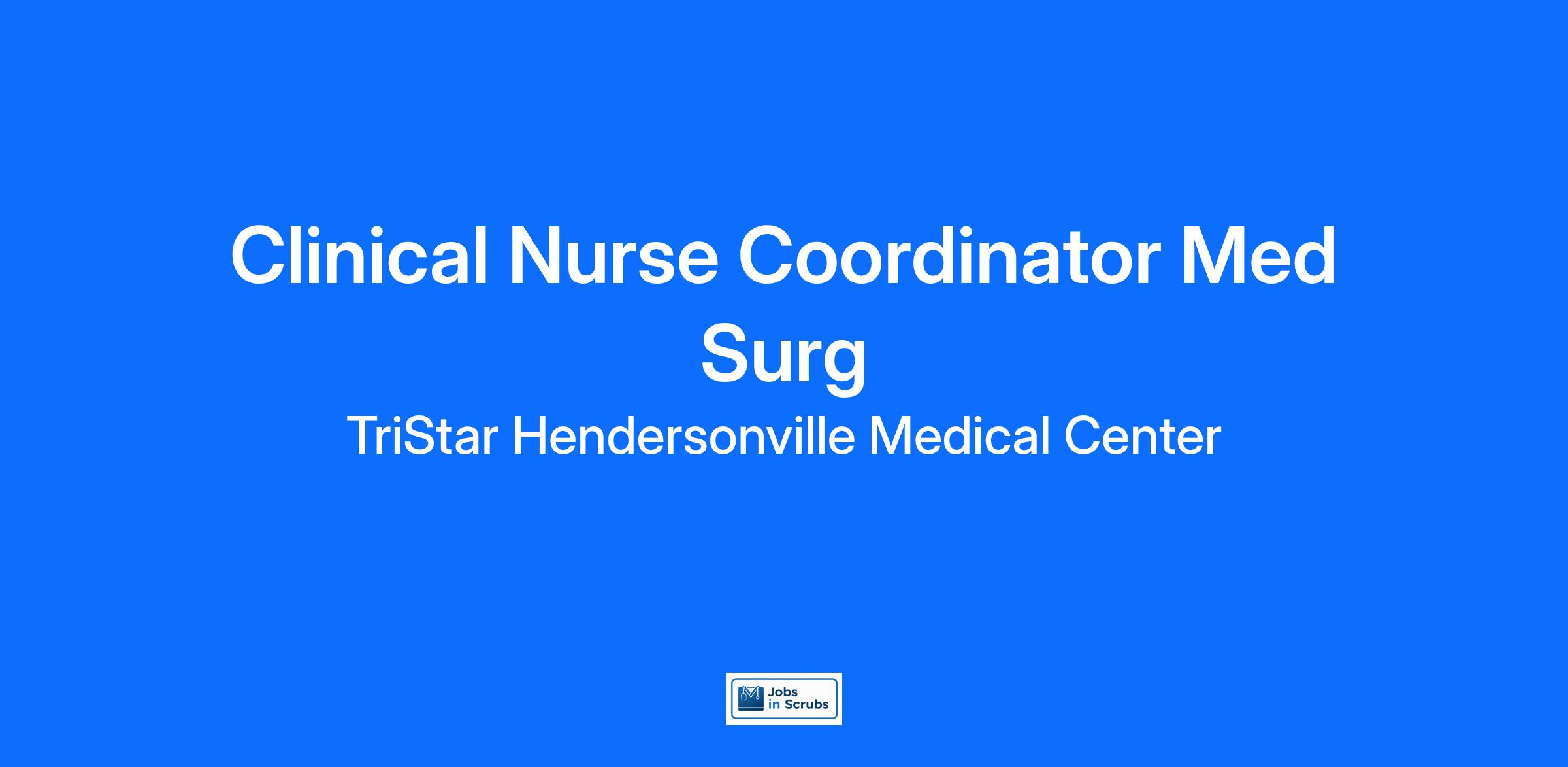 Experience the HCA Healthcare difference where colleagues are trusted, valued members of our healthcare team. Grow your career with an organization committed to delivering respectful, compassionate care, and where the unique and intrinsic worth of each individual is recognized. Submit your application for the opportunity below:Clinical Nurse Coordinator Med SurgTriStar Hendersonville Medical Center