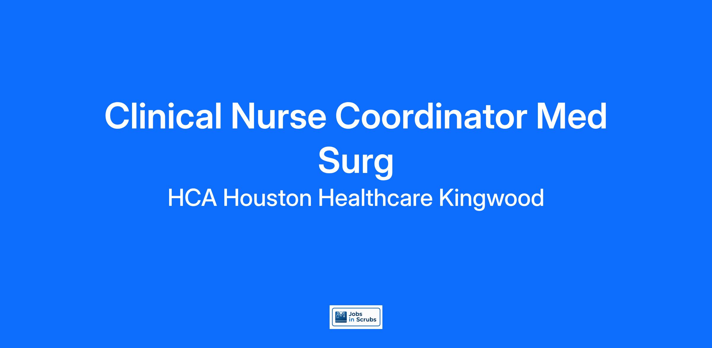 Do you want to be appreciated daily? Our nurses are celebrated for being on the front line, empathetic for patients. At HCA Houston Healthcare Kingwood our nurses set us apart from any other healthcare provider. We are seeking a(an) Clinical Nurse Coordinator Med Surg to join our healthcare family.